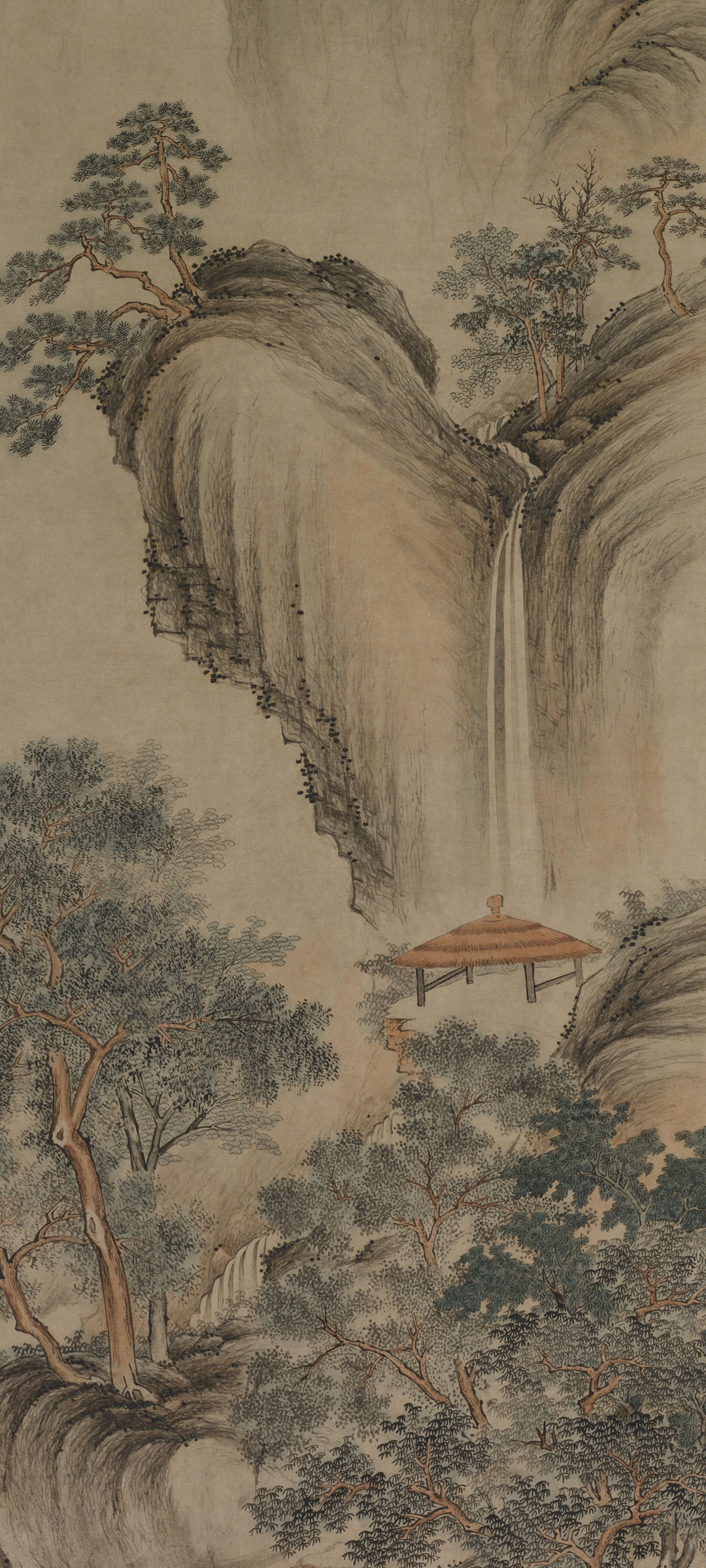山水画 山 石头 瀑布 亭子 古风 风景 手机 壁纸