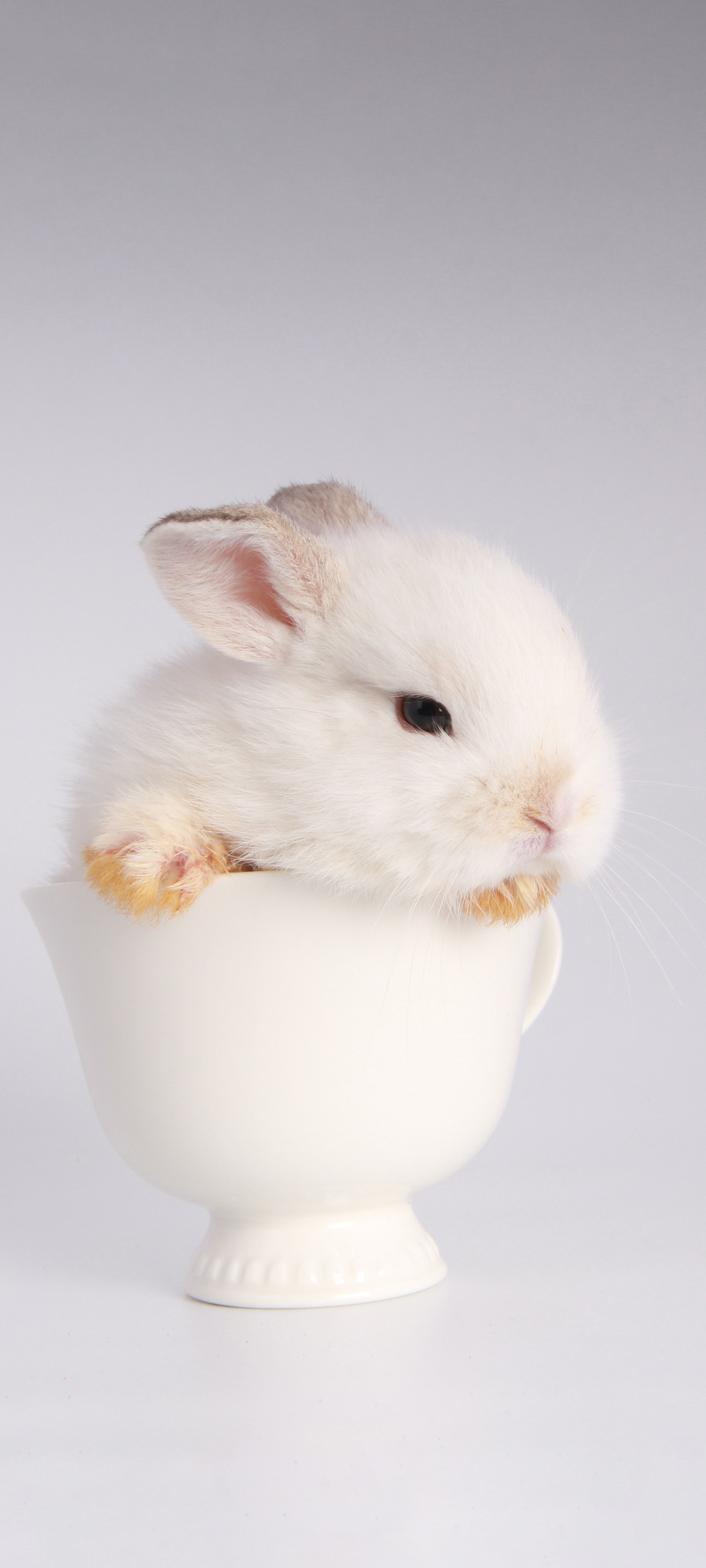 可爱小白兔杯子主题动物免费手机壁纸下载
