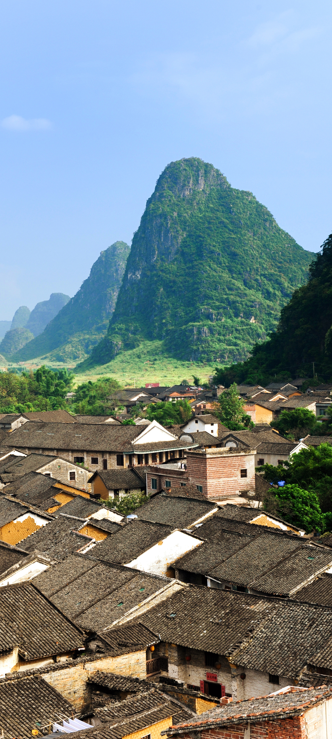 古镇 乡村 房子 山 风景 手机 壁纸