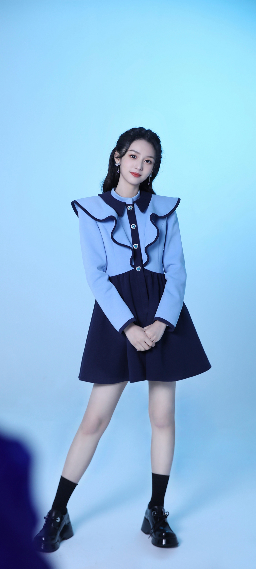 周也深蓝色裙子美腿美女高清免费手机壁纸下载