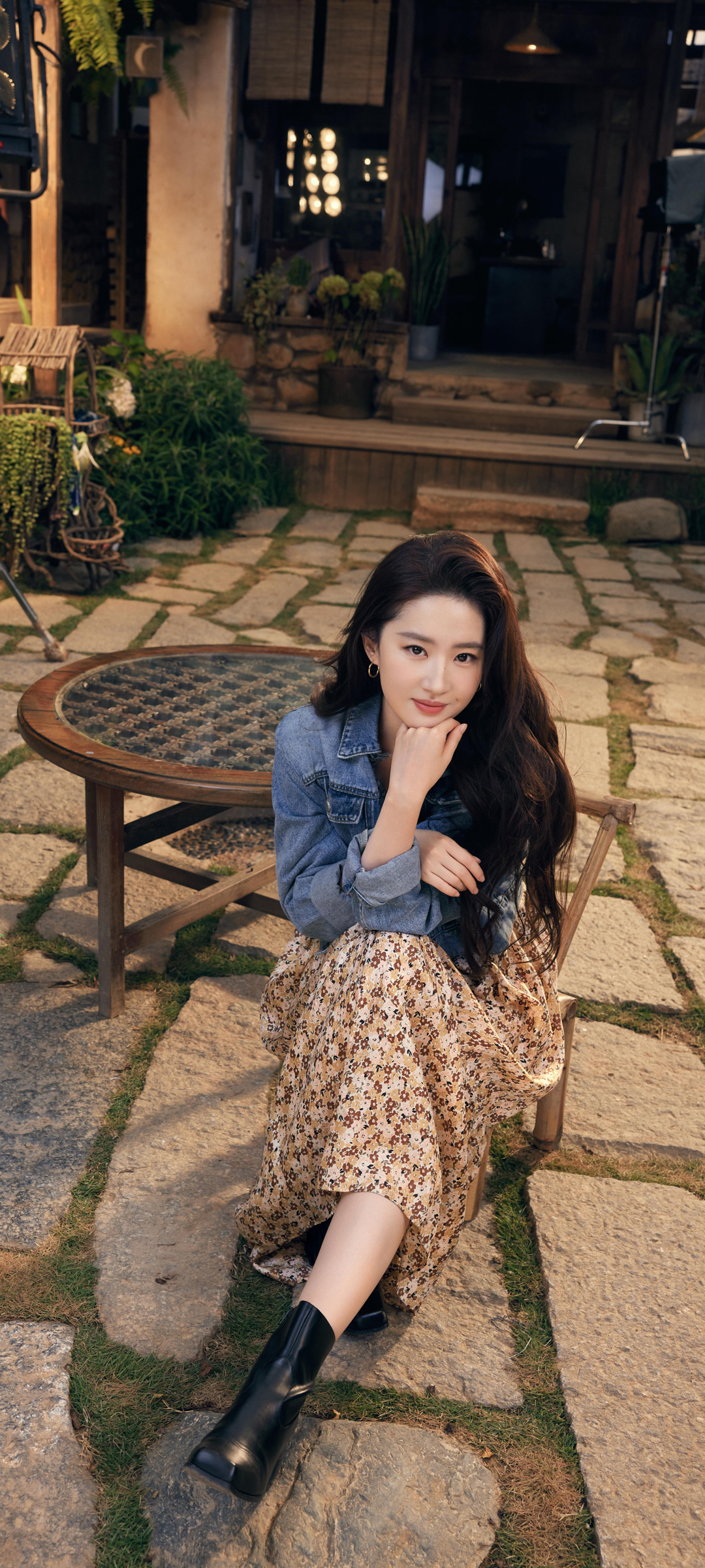 刘亦菲牛仔衣搭配小碎花裙美女手机壁纸免费下载
