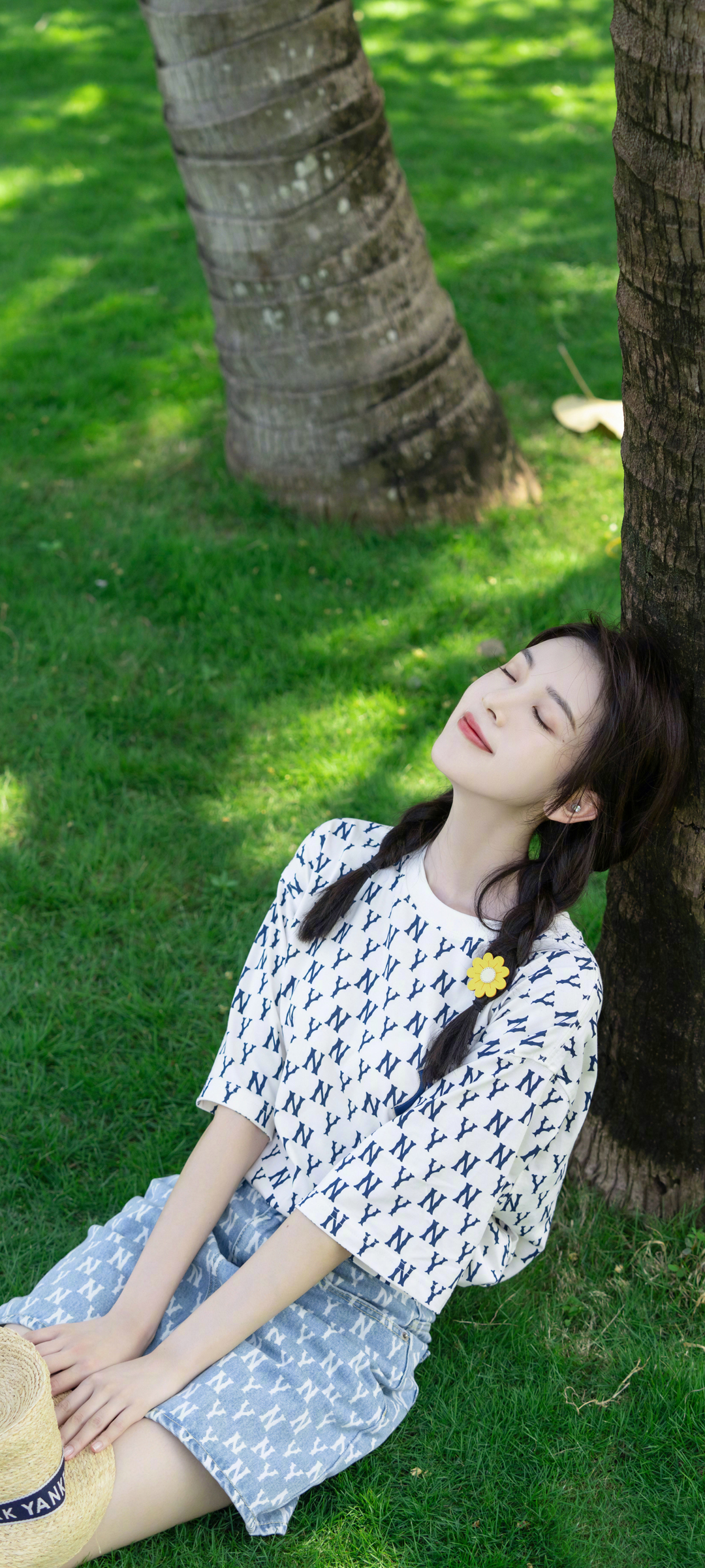 公园 绿色草地 小清新 美女 双马尾辫 手机 壁纸