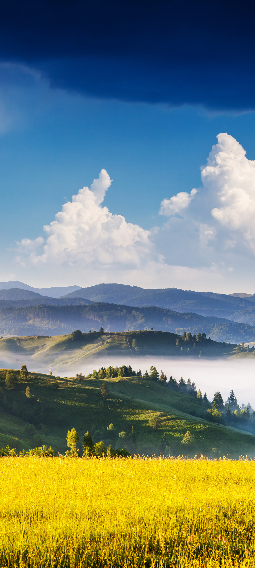 蓝天白云绿色草地与大树风景免费手机壁纸下载