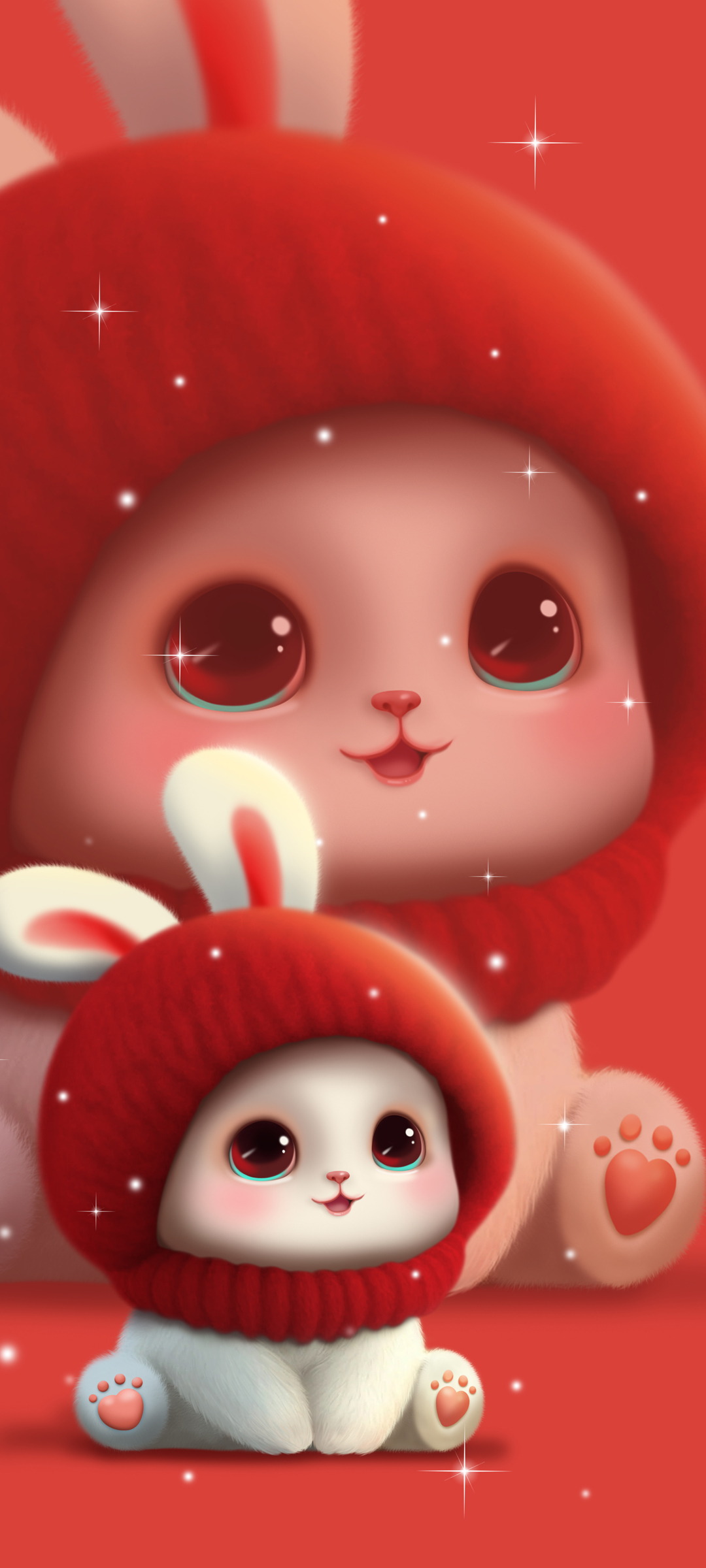 新年快乐 瑞兔 深红色 春节 手机壁纸