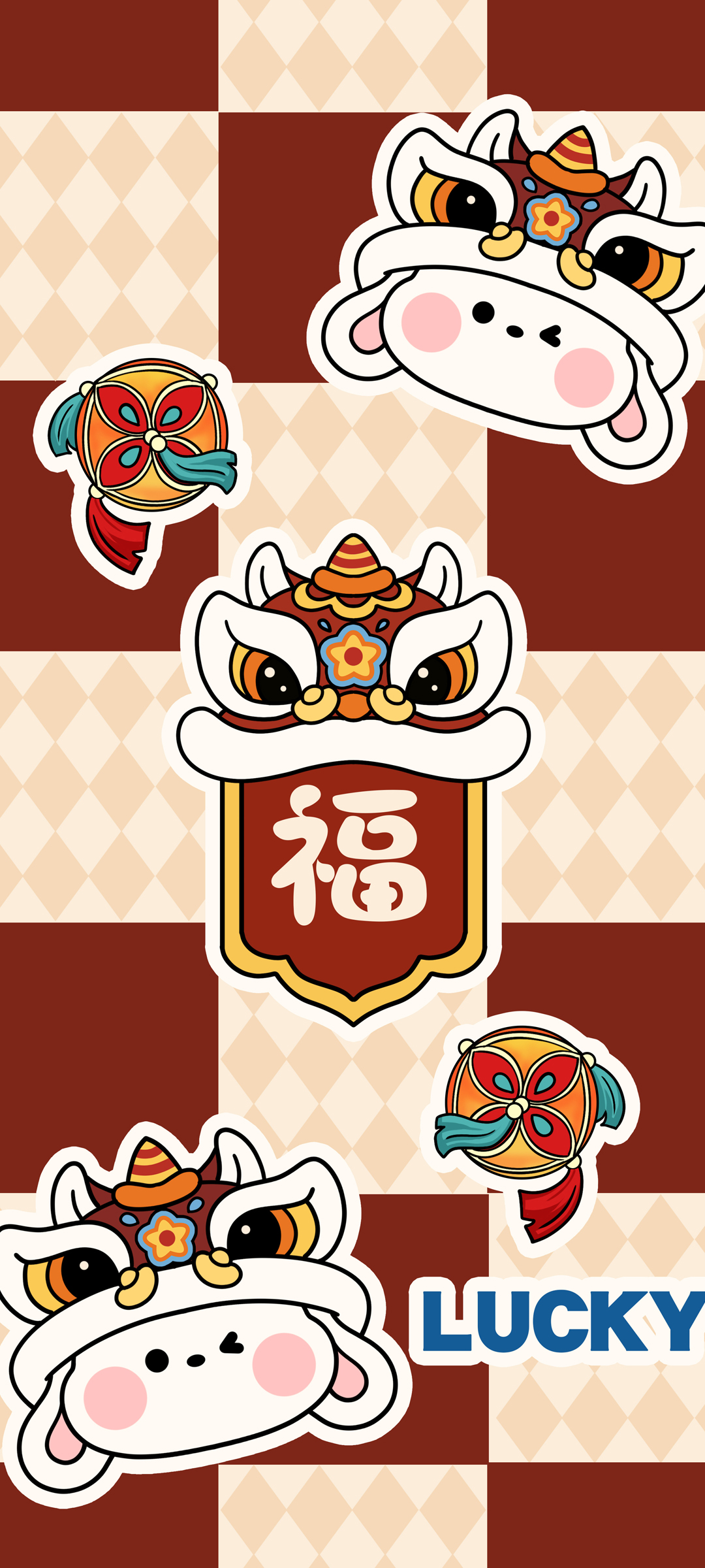 2023舞狮兔子福字新年免费手机壁纸下载