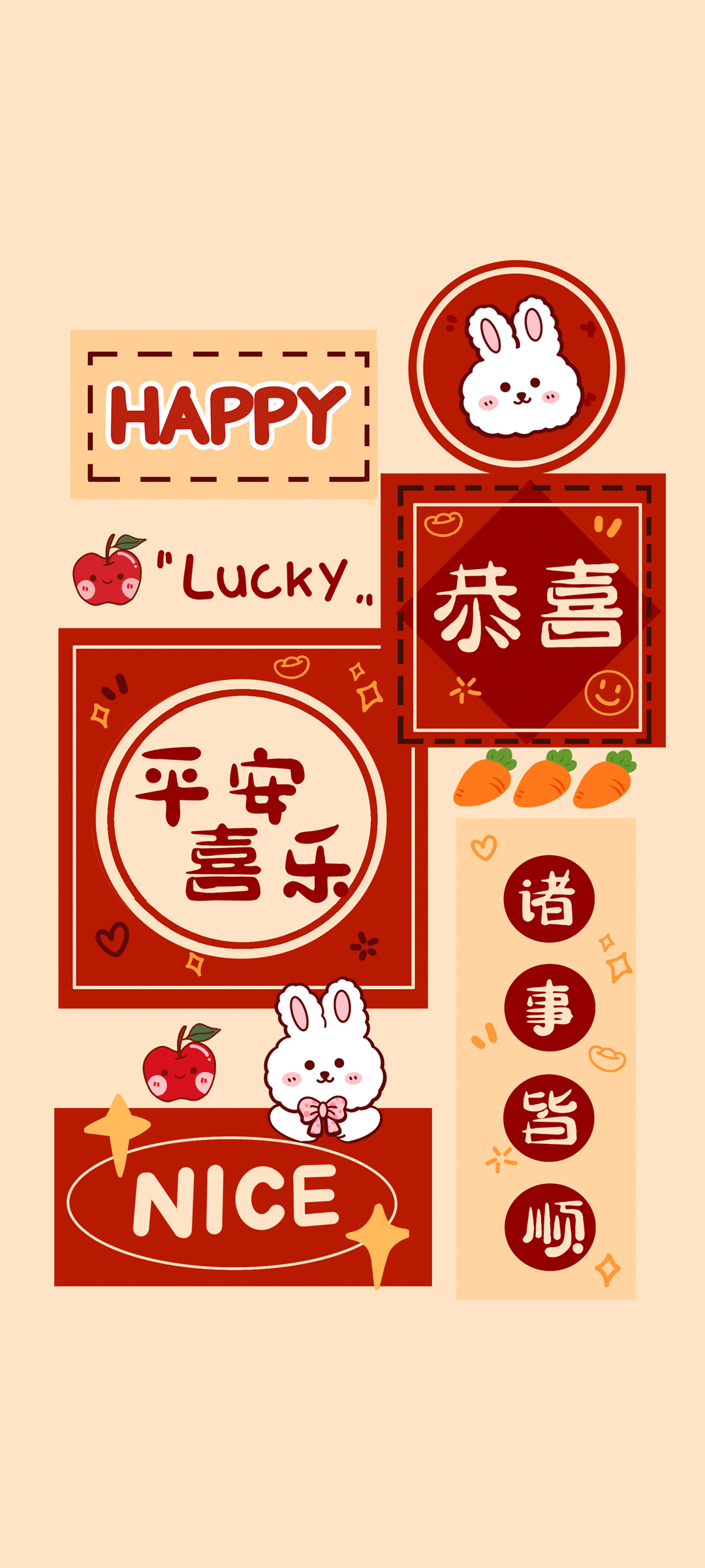2023 好运 兔年 简单 可爱 新年 手机壁纸