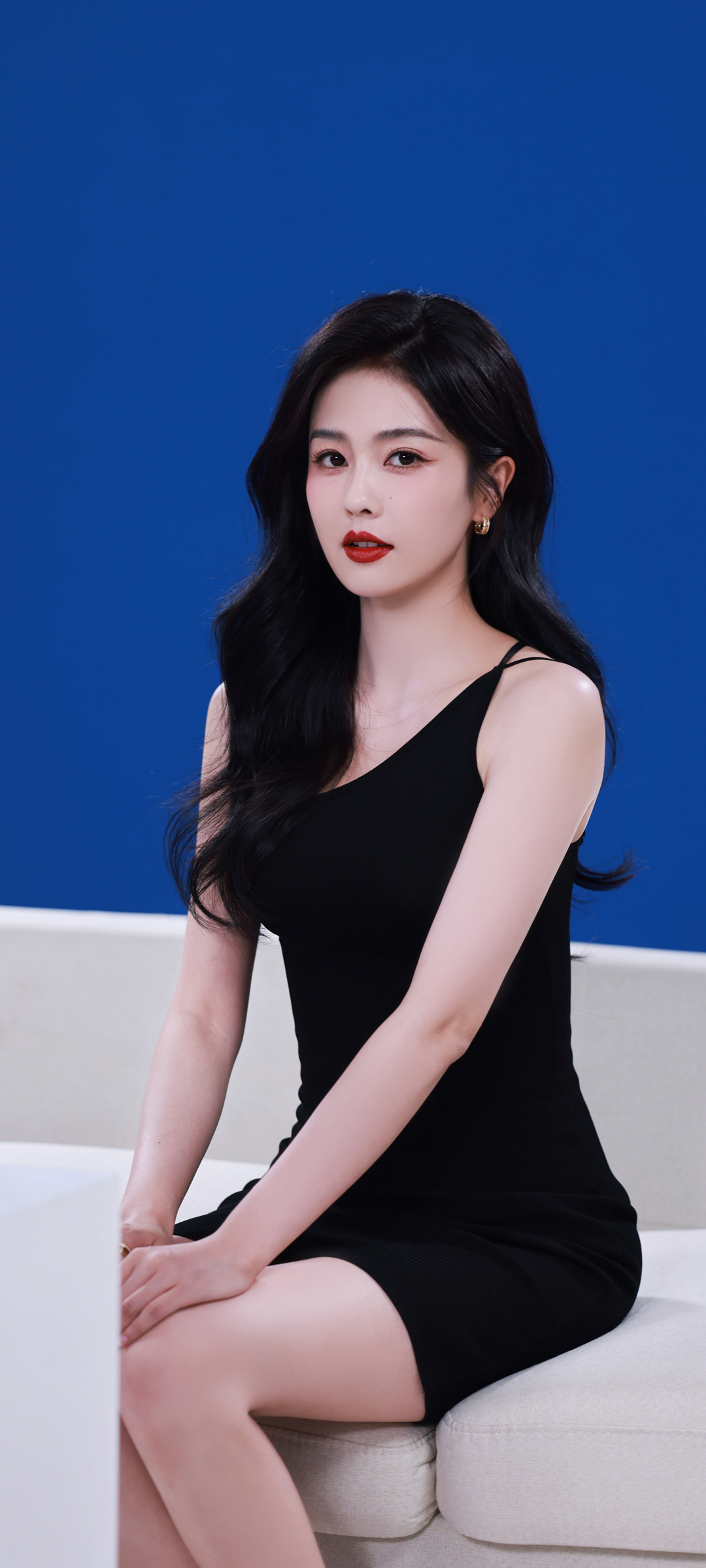 白鹿黑色连衣包臀裙美女手机壁纸免费下载