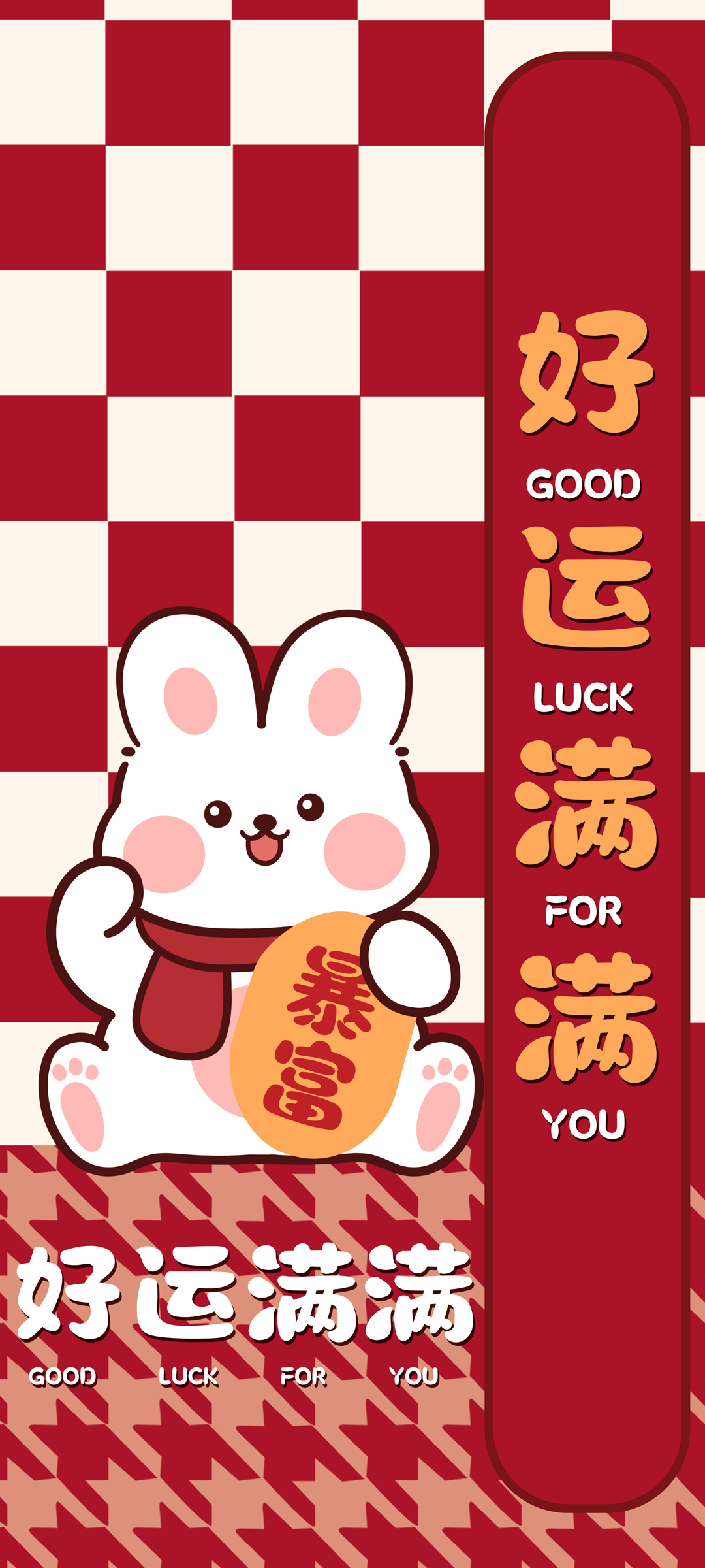 好运满满 暴富 新年 可爱兔子 手机 壁纸