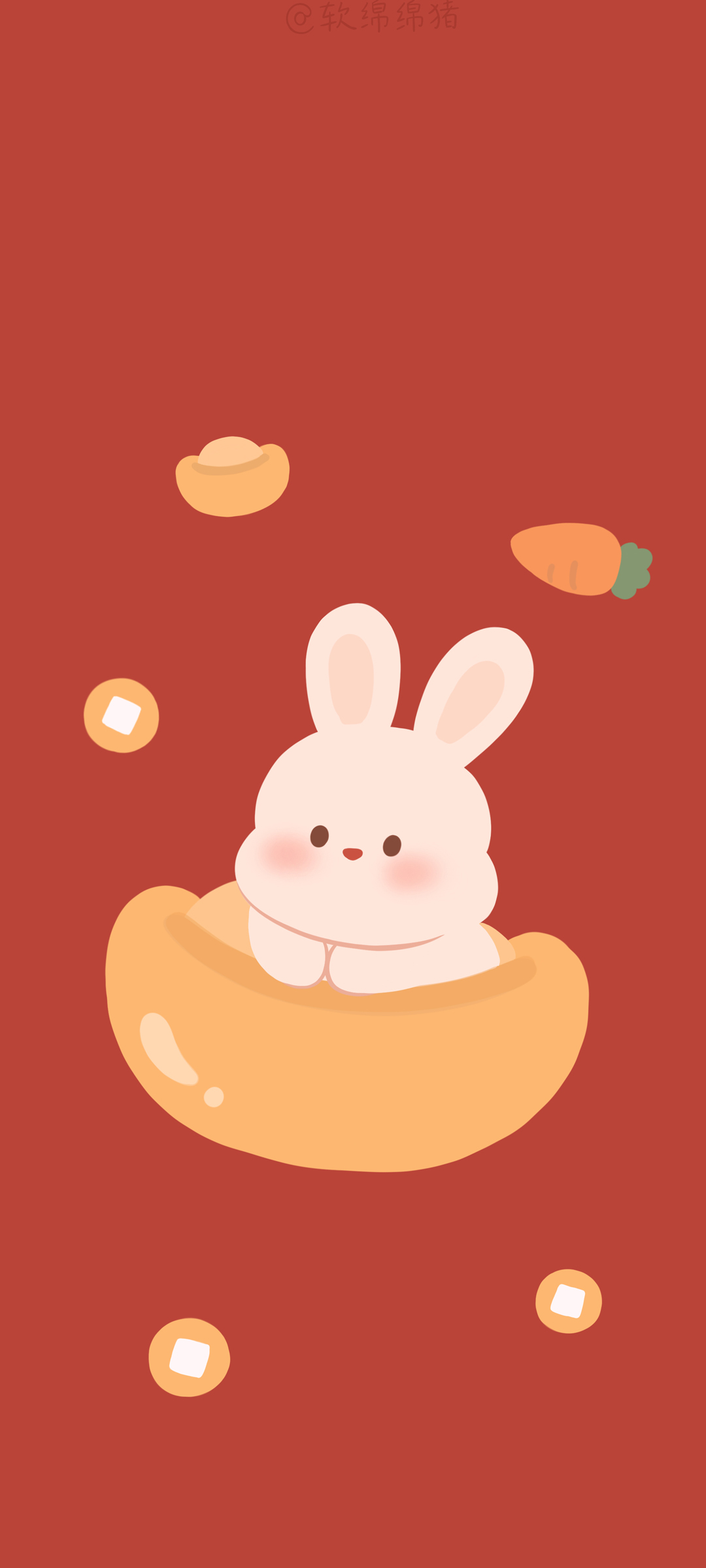 可爱 兔子 元宝 新年 2023 手机壁纸