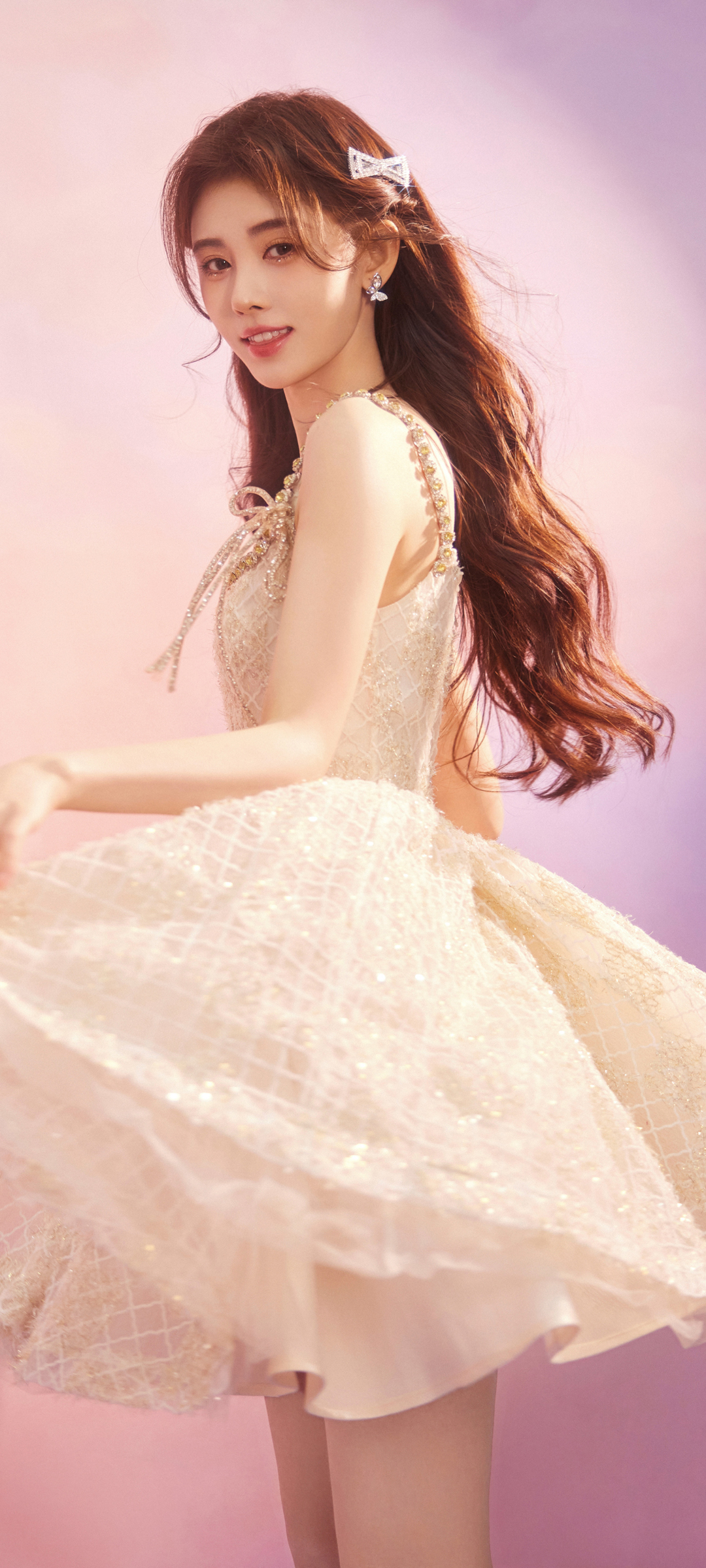 鞠婧祎白色裙子微笑美女高清免费手机壁纸下载