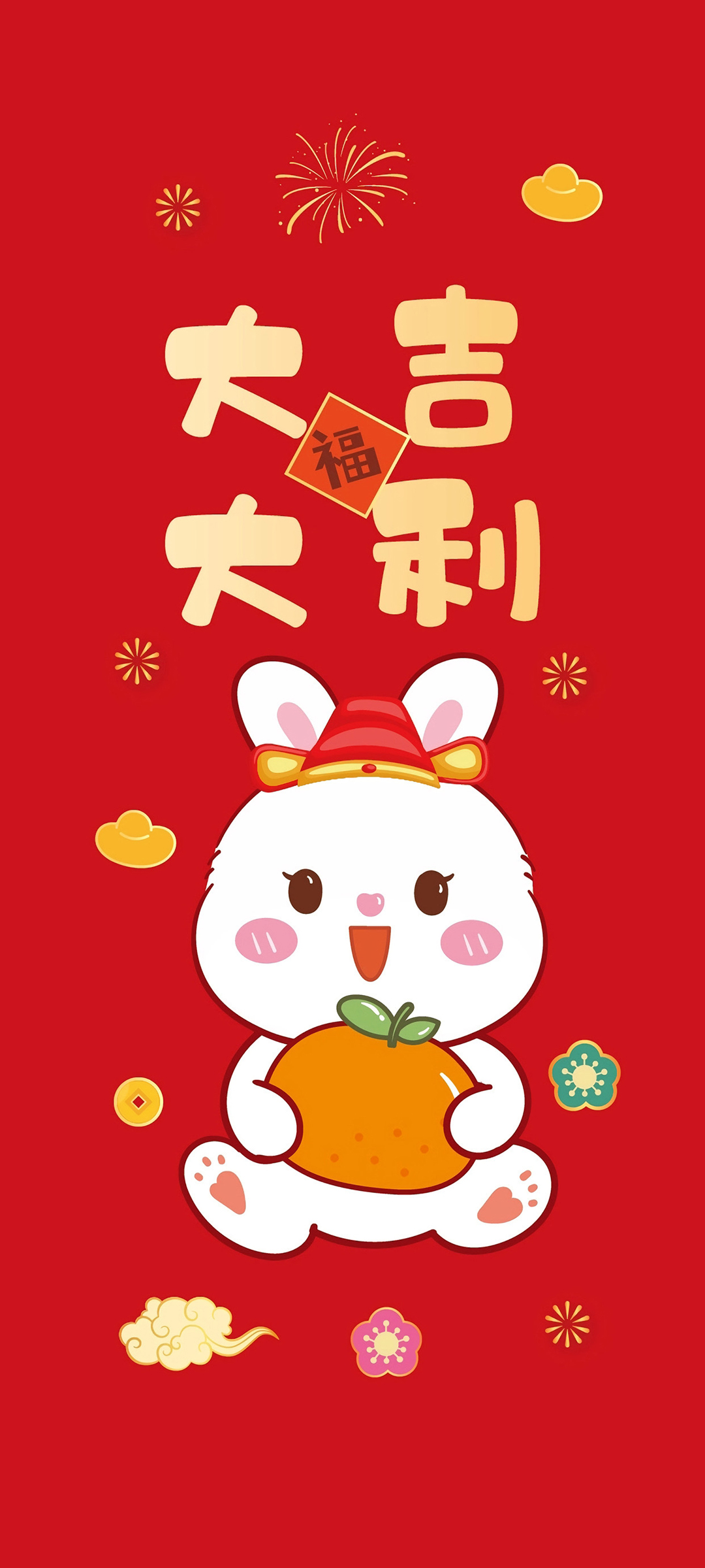 好运满满 暴富 新年 可爱兔子 手机 壁纸