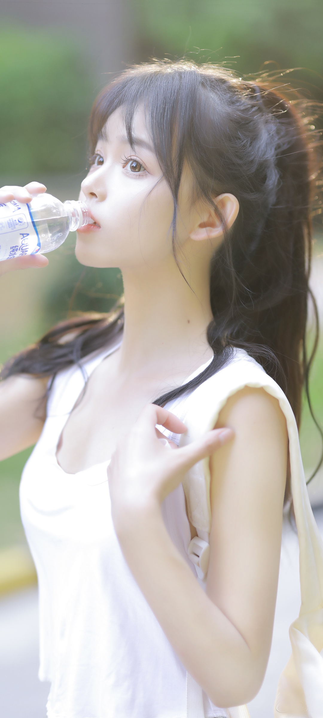 小清新白色衣服美女手持纯净水手机壁纸免费下载