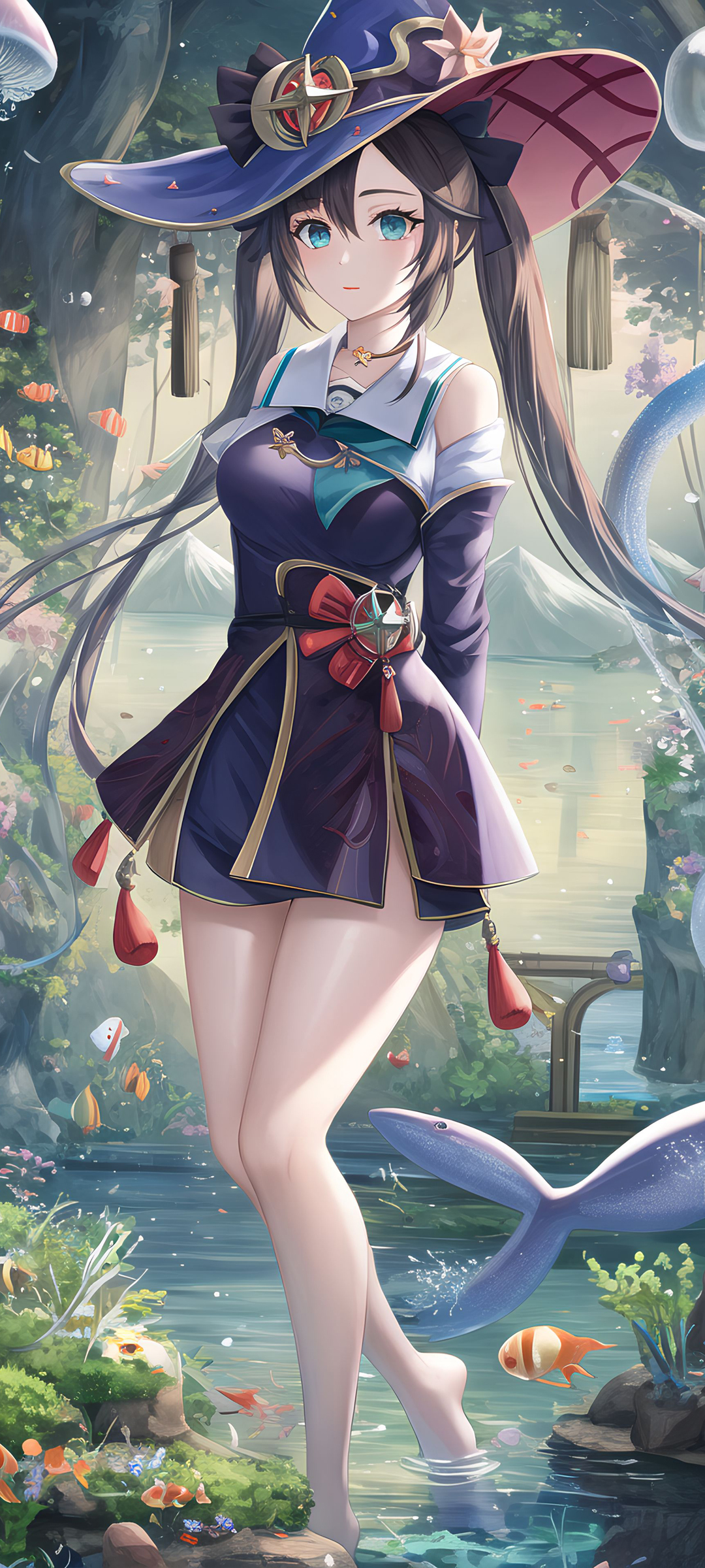 森林 少女 帽子 鱼 动漫 手机 壁纸
