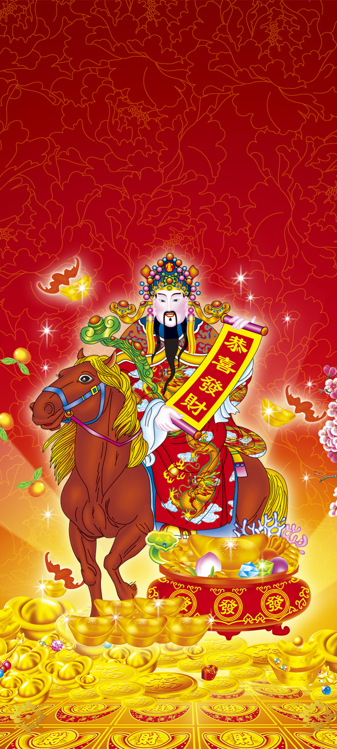新年财神马聚宝盆黄金主题免费手机壁纸下载