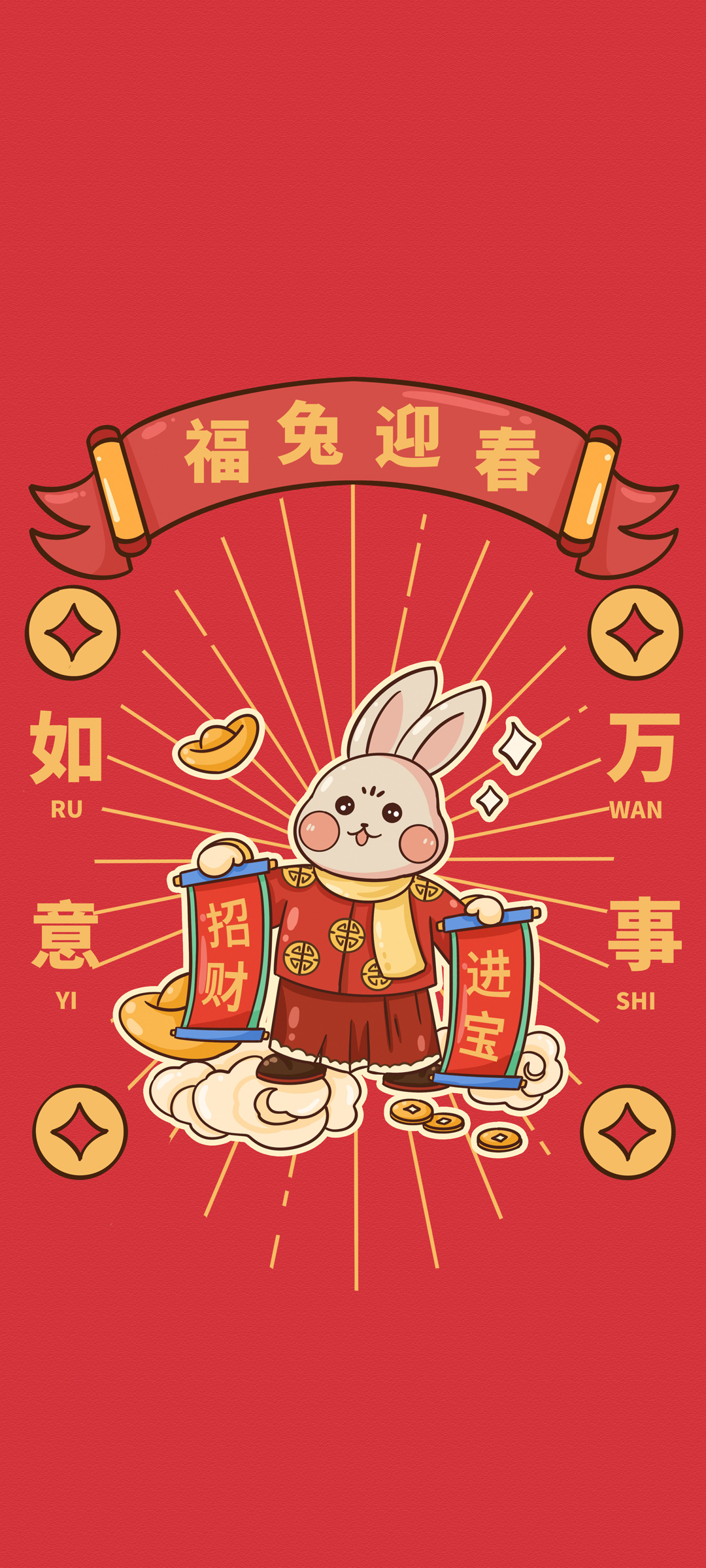 心想事成 发财兔子 新年 可爱 2023 手机壁纸
