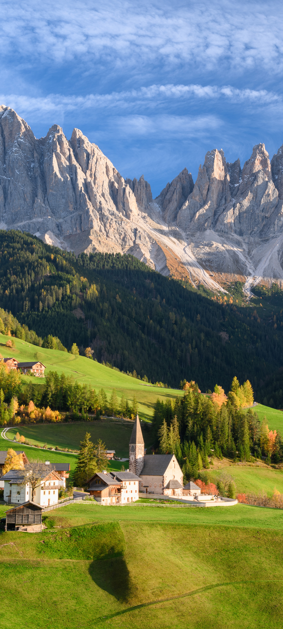 阿尔卑斯山脉乡村教堂房子绝美风景免费手机壁纸下载