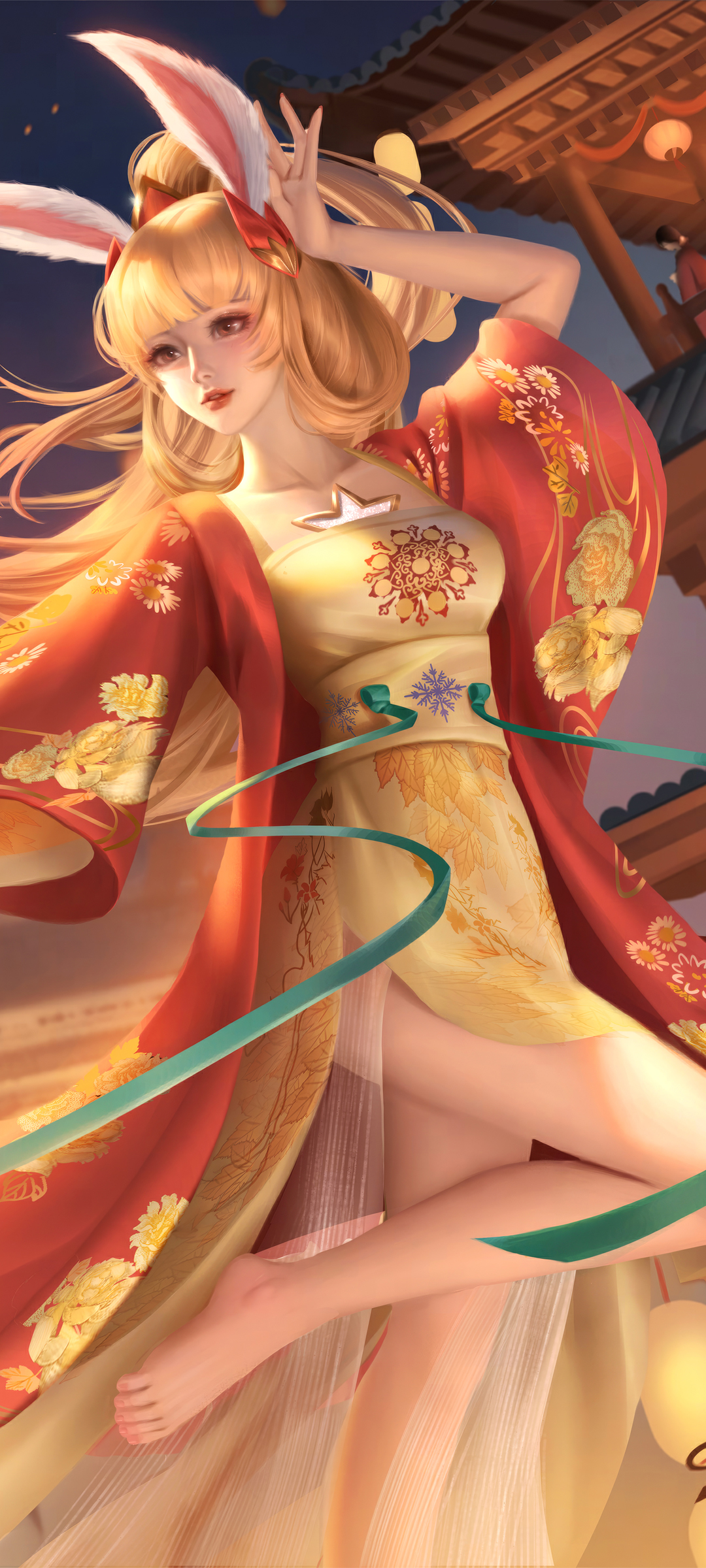 王者荣耀公孙离 兔耳朵 红色衣服 伞 手机 壁纸