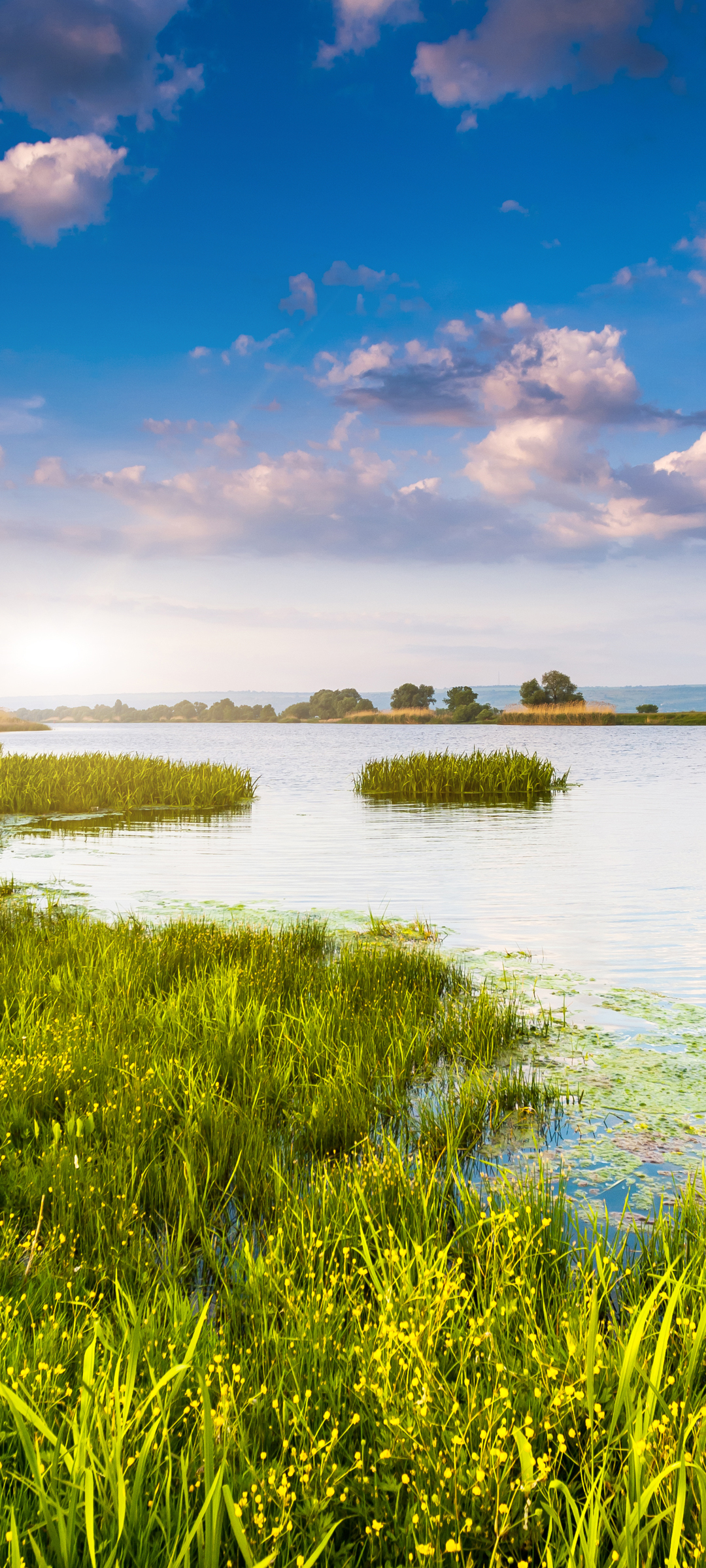 美丽自然风景,蓝天白云树林水池草地免费手机壁纸下载