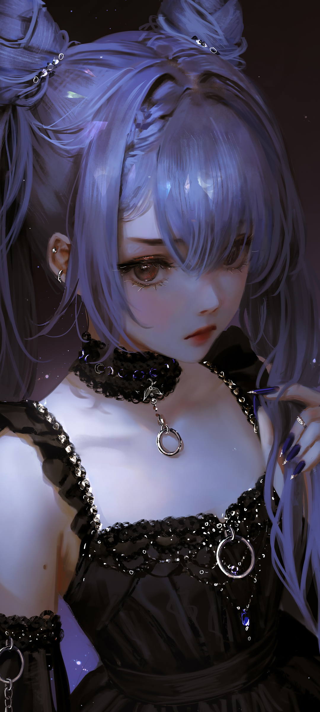 少女长头发戴耳环项链穿黑裙动漫高清手机壁纸免费下载