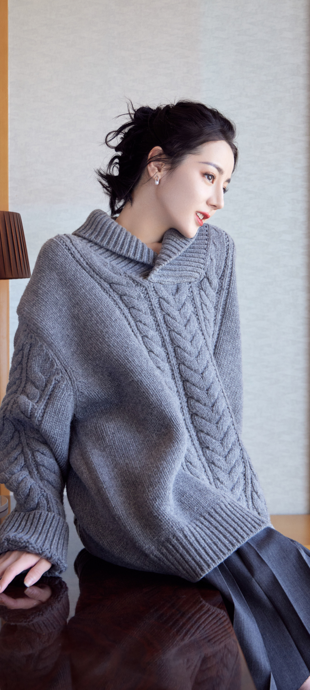 迪丽热巴毛衣百褶裙造型美女手机壁纸免费下载