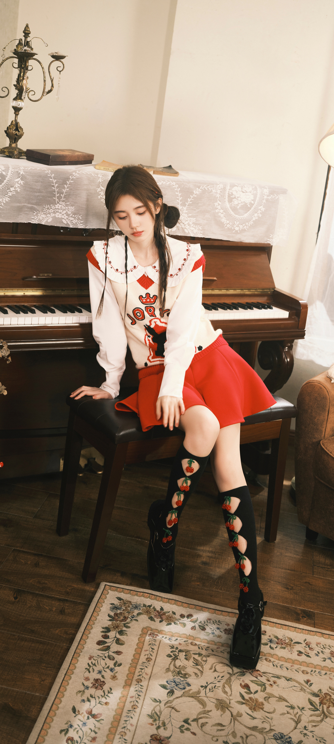 鞠婧祎 落 黑红色裙子 古风美女手机壁纸