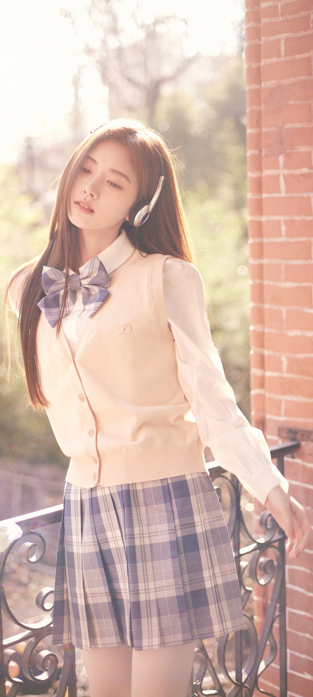 鞠婧祎小清新学生装短裙蝴蝶结美女手机壁纸免费下载