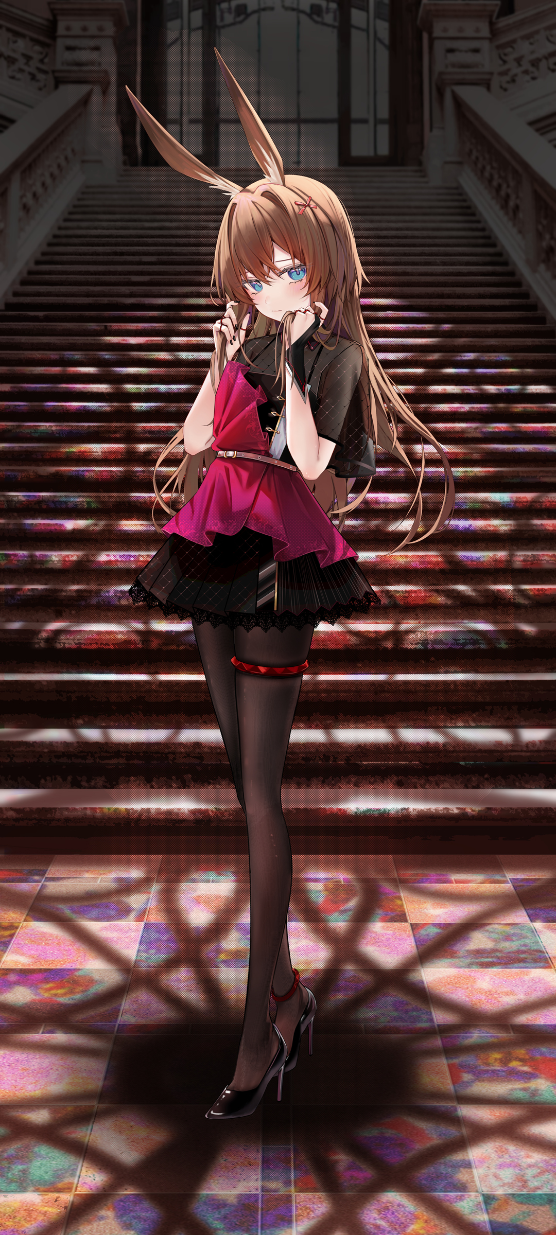 动漫女孩 兔耳朵 黑色裙子 黑丝长裤袜 壁纸