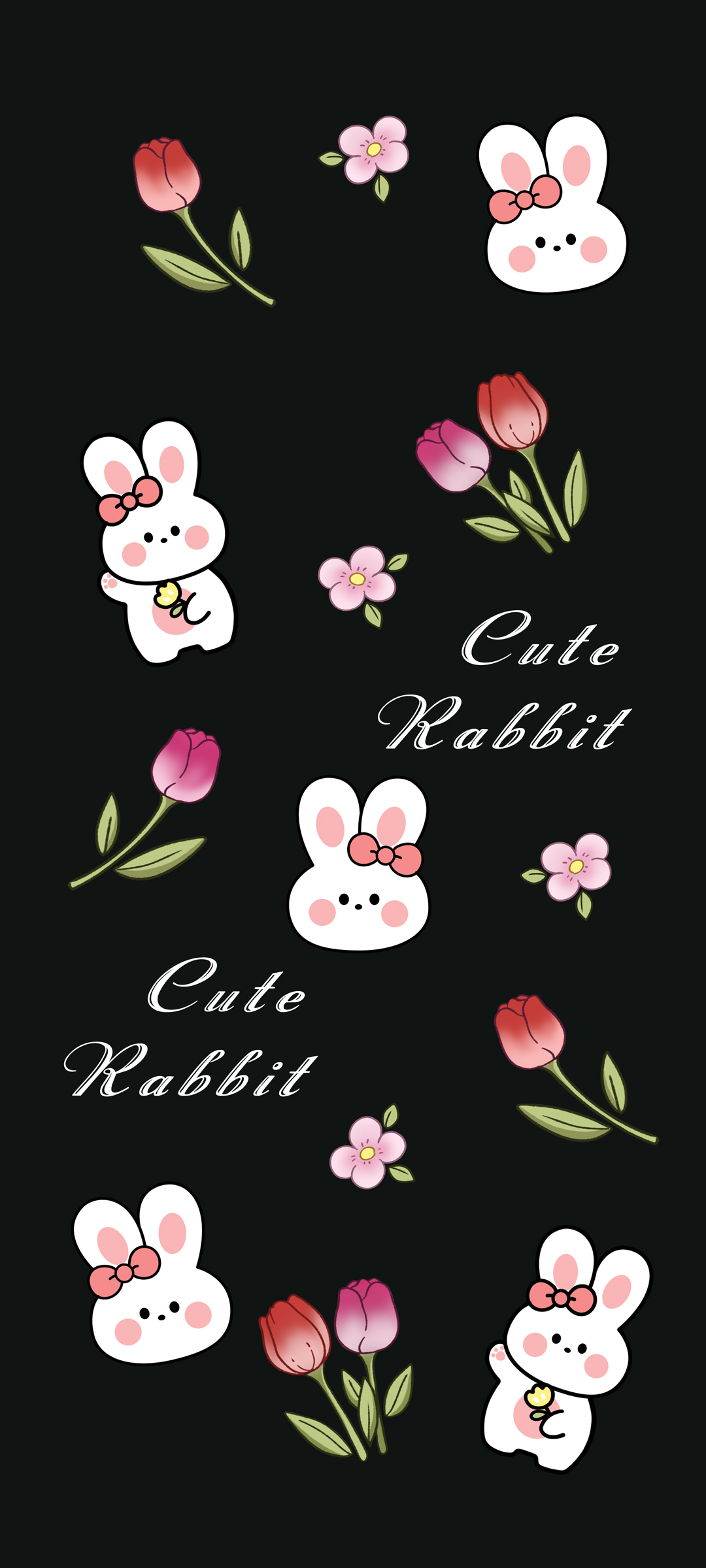 可爱小兔子与花黑色背景女生专用免费手机壁纸下载