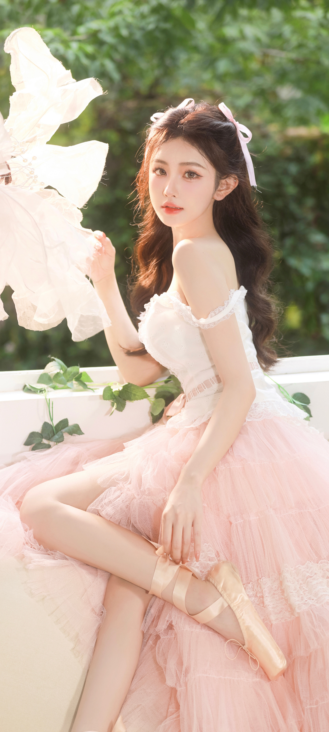 美女 漂亮裙子 美腿 春天 花 风景 手机壁纸