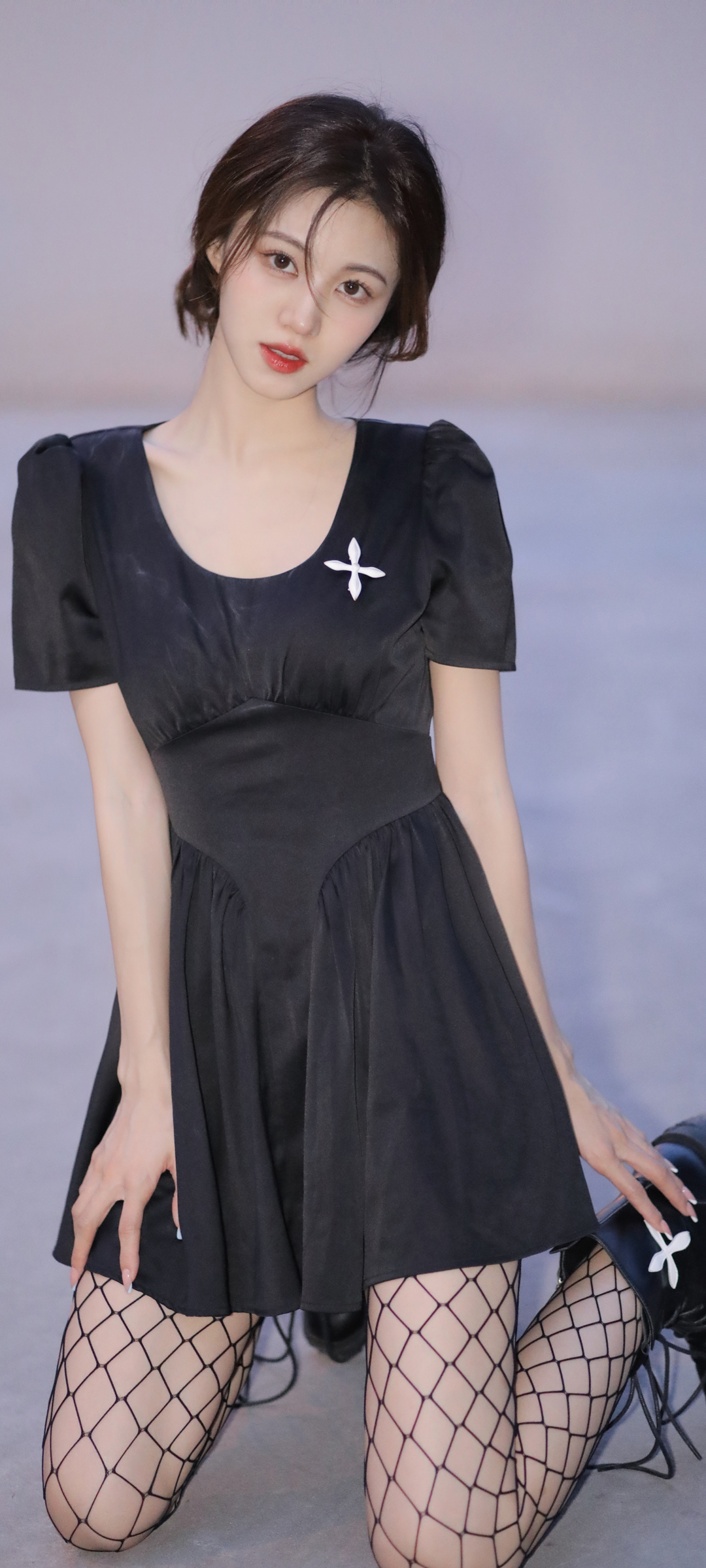 美女黑色裙子 黑色网袜 全屏美女手机壁纸