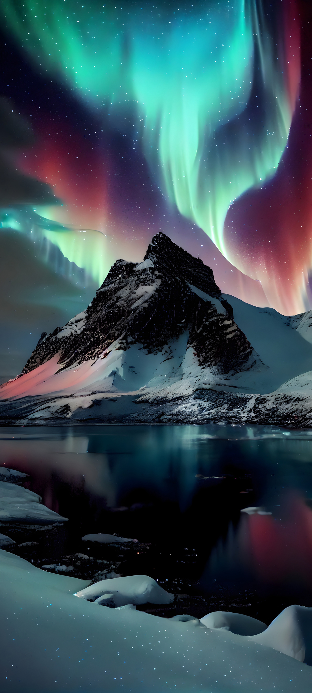 极光映照雪山绝美风景手机壁纸免费下载