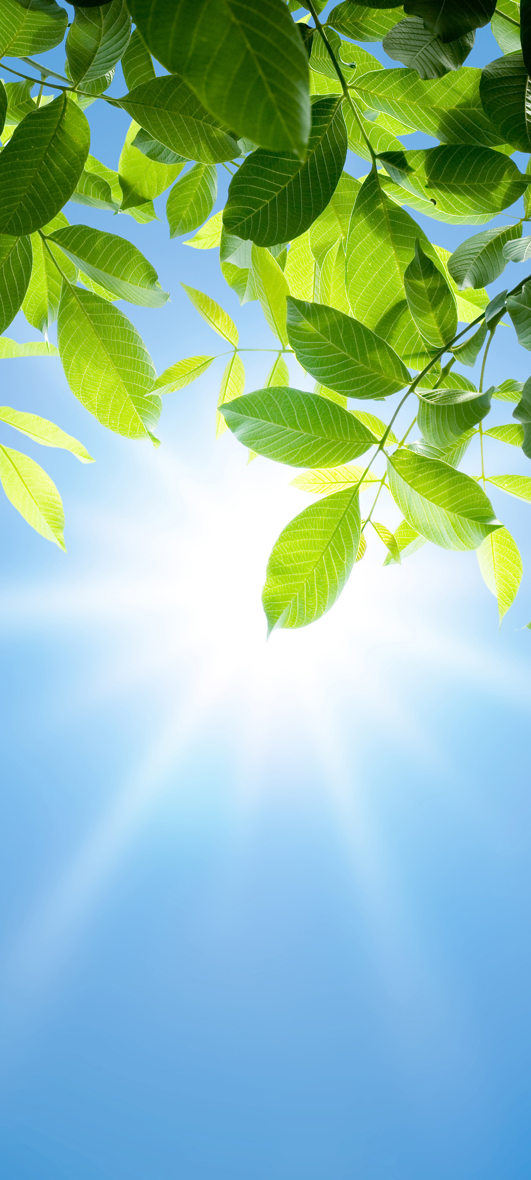 春天阳光下的树叶与天空风景手机壁纸免费下载