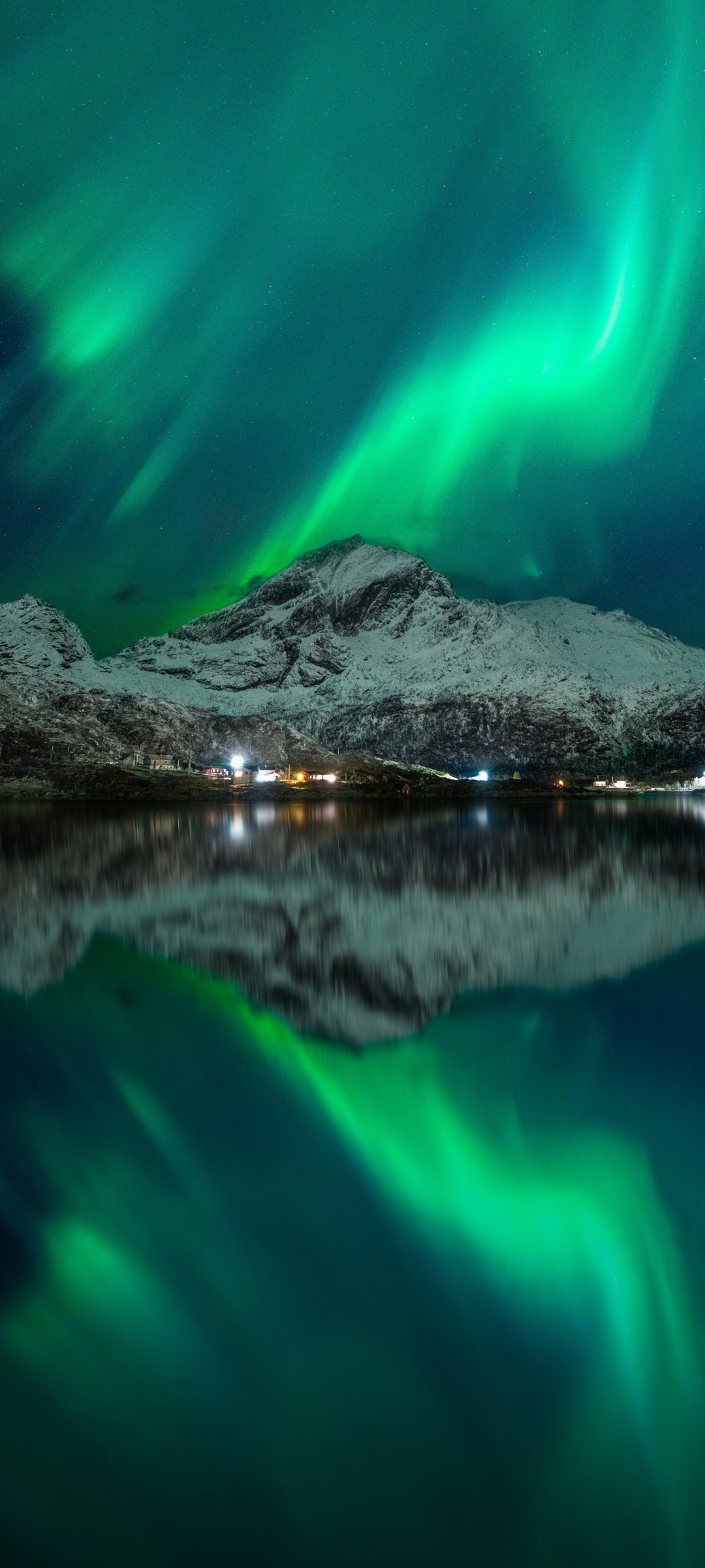 极光映雪山 湖水相伴风景手机壁纸免费下载