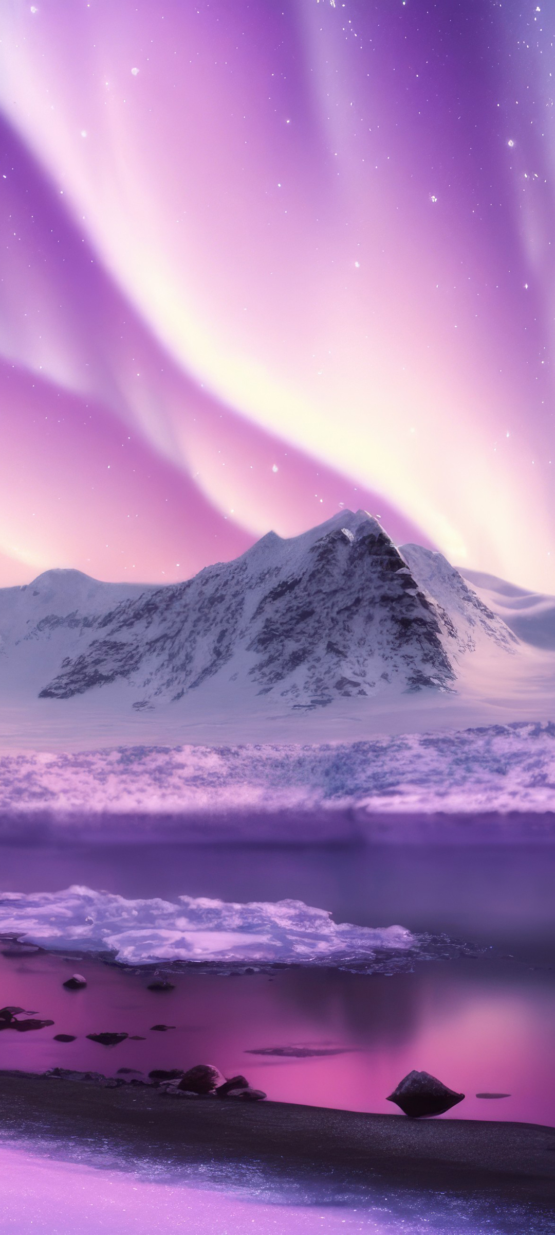 紫色极光雪山风景免费手机壁纸下载