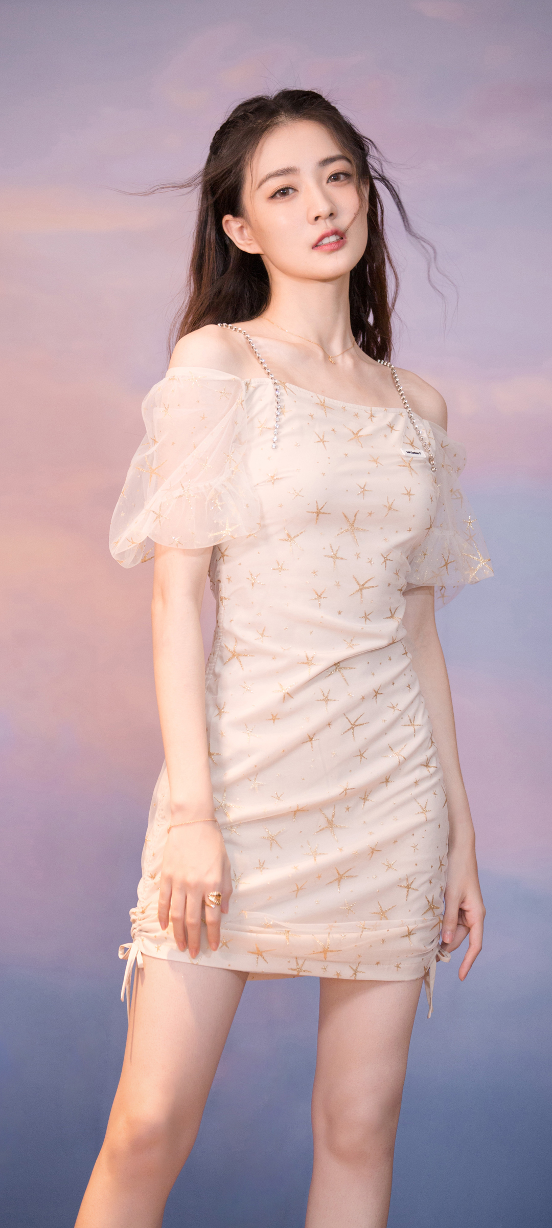 蓝色裙子 侧脸美女 鞠婧祎手机壁纸