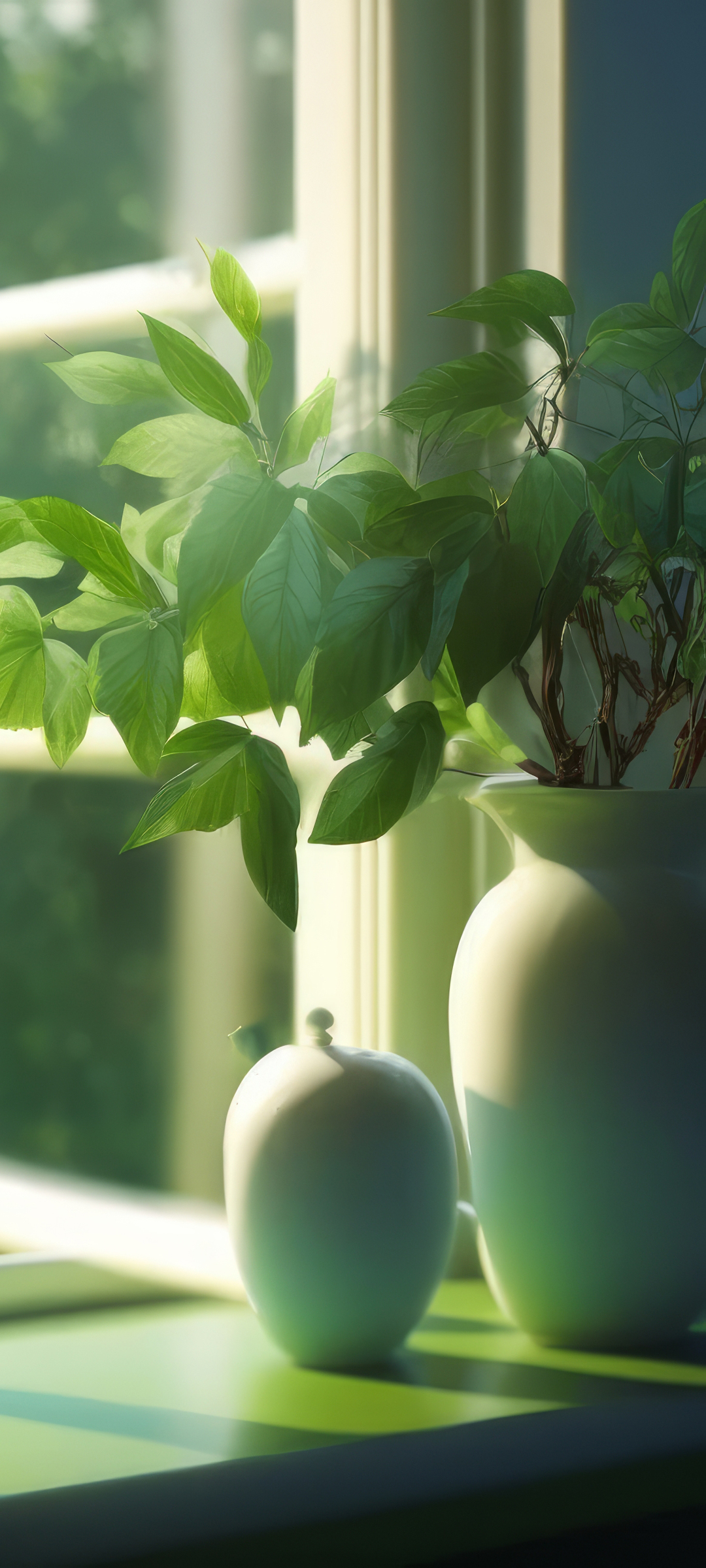 居家 花瓶 绿色植物 手机壁纸
