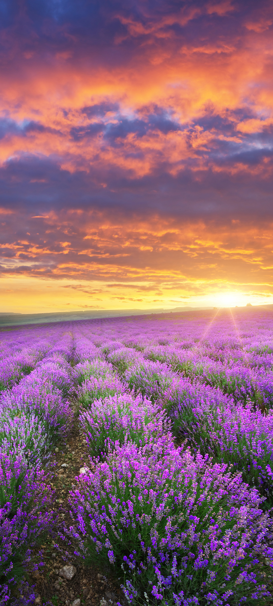 紫色薰衣草与日落晚霞云天空交织的免费风景手机壁纸下载