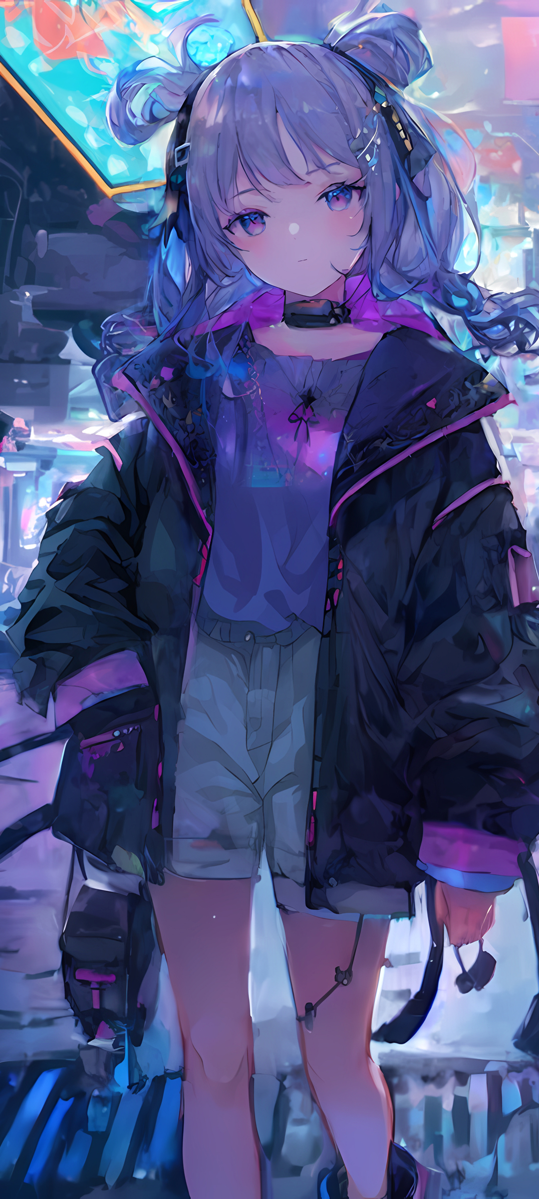 赛博朋克风格可爱女孩动漫手机壁纸免费下载