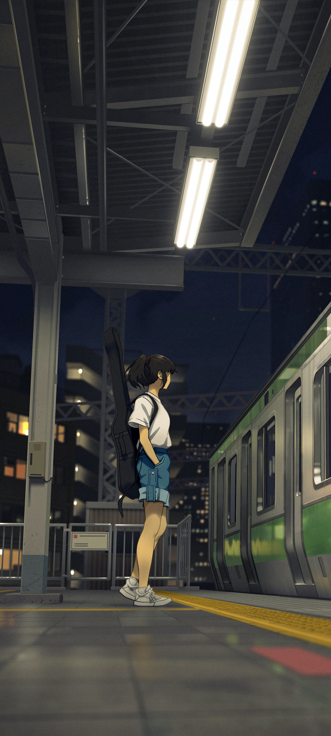 少女吉他车站列车主题动漫手机壁纸免费下载