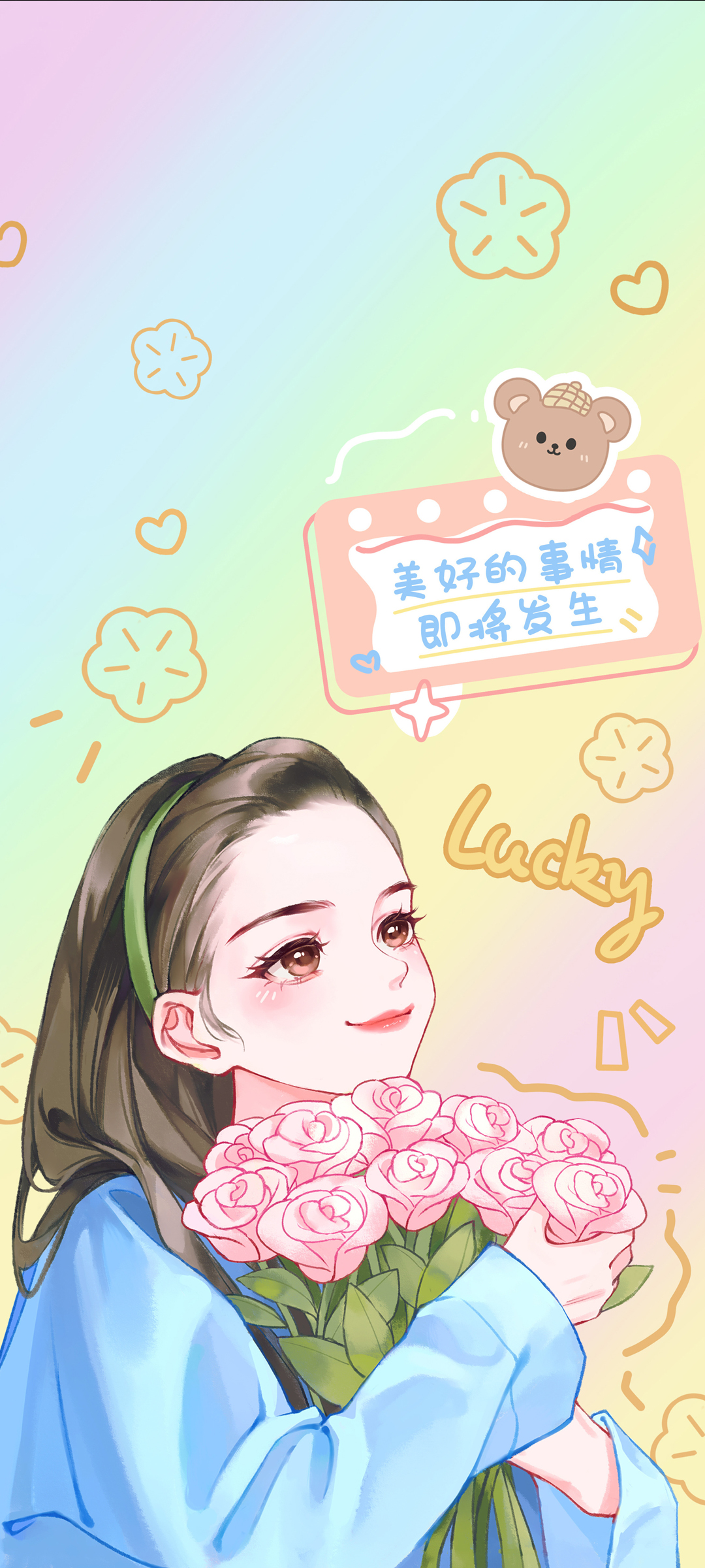 美好将至女孩手捧鲜花动漫免费手机壁纸下载
