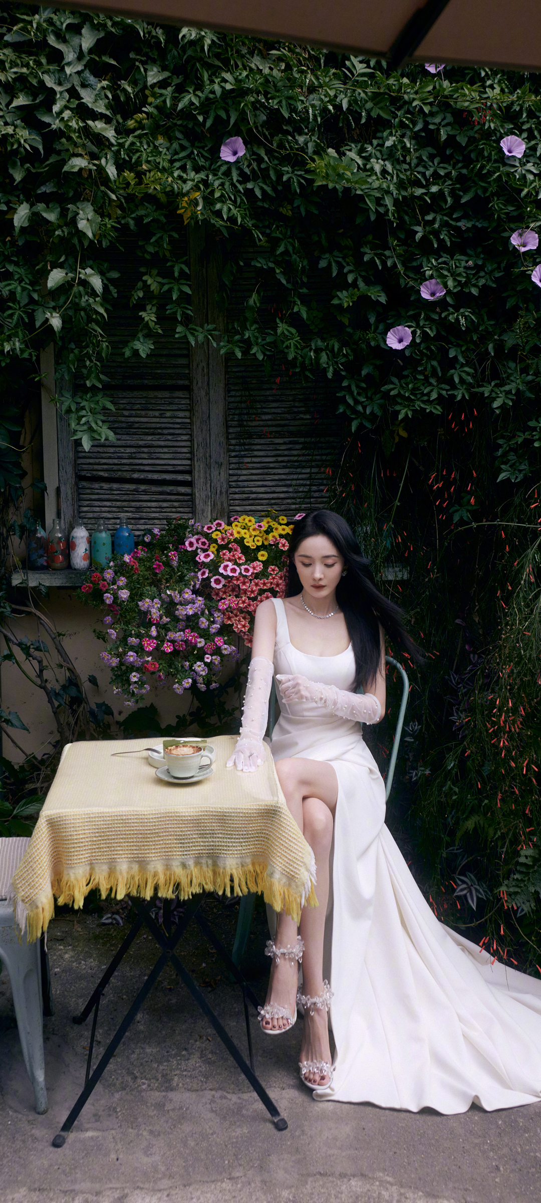 杨幂白色长裙子高清手机桌面壁纸