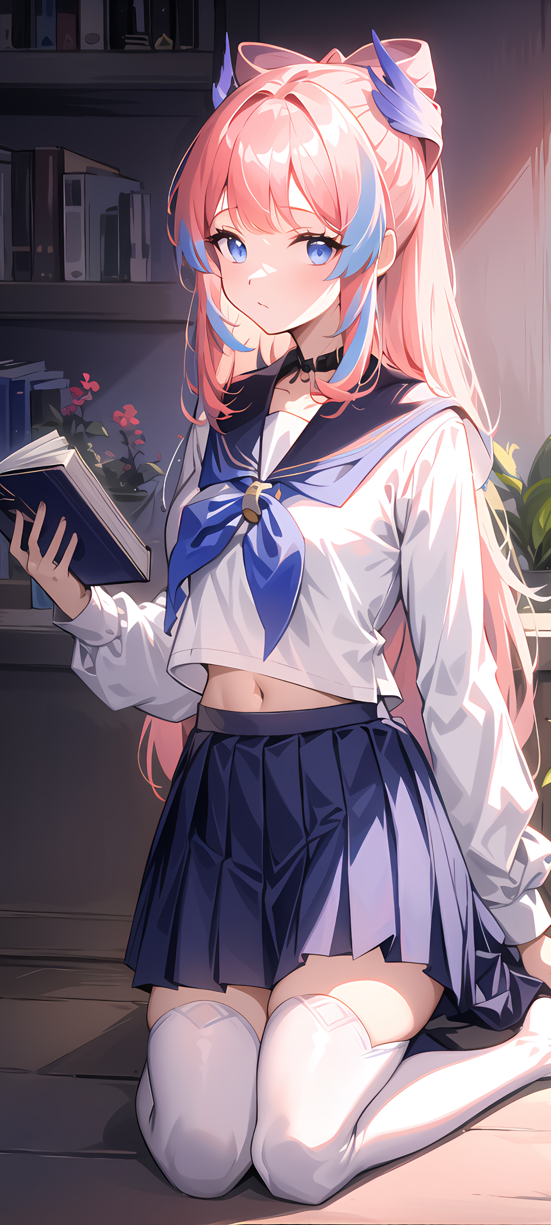 动漫女生信主题蝴蝶结百褶裙手机壁纸免费下载
