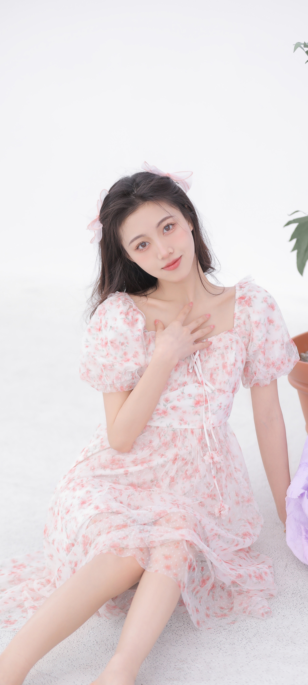 居家公主风粉色裙子养眼美女免费手机壁纸下载