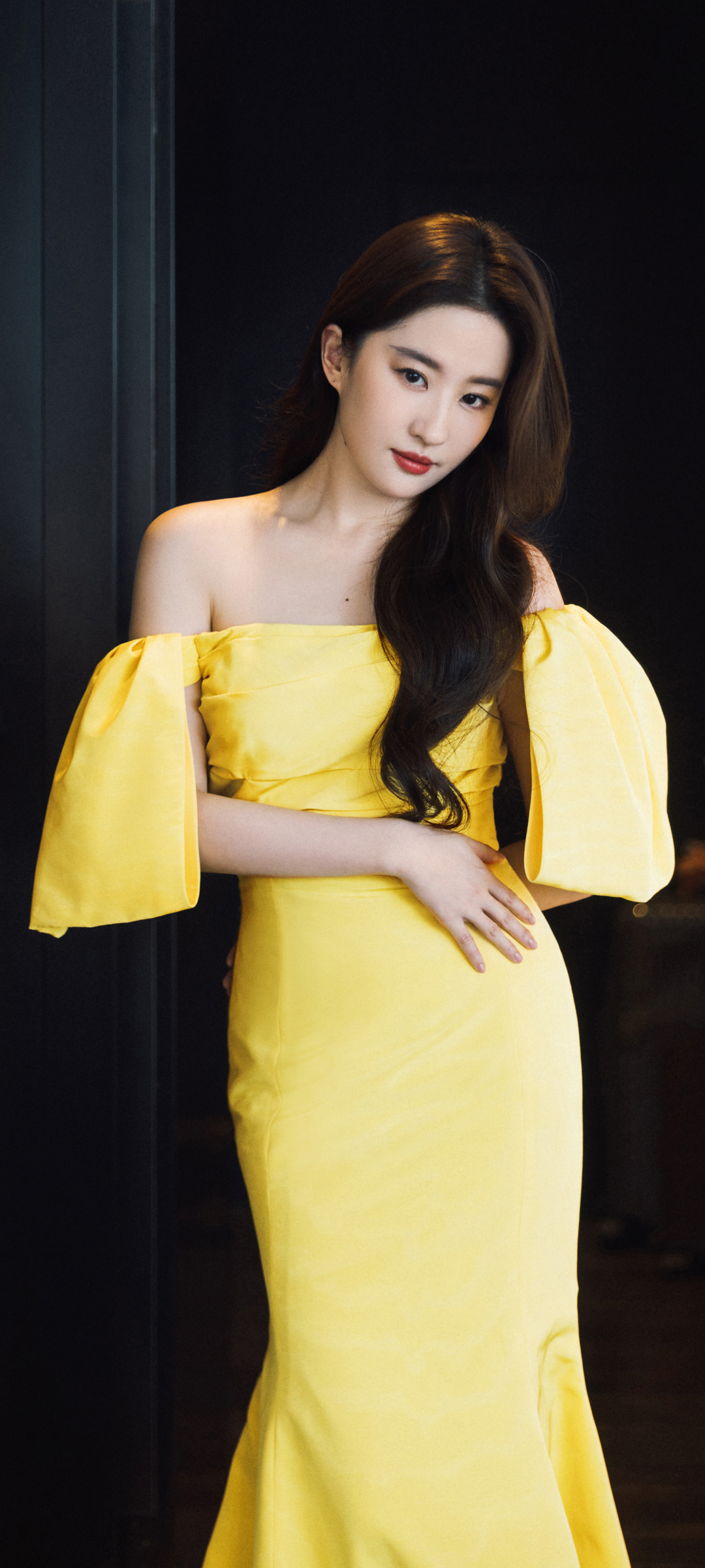 刘亦菲 黄色礼服裙子 美女手机壁纸