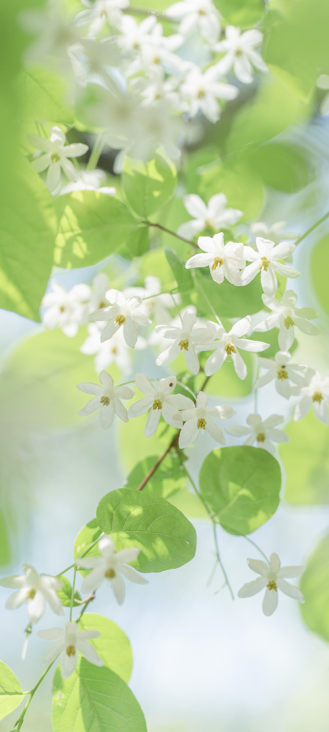清新绿叶白色花朵手机高清风景壁纸免费下载