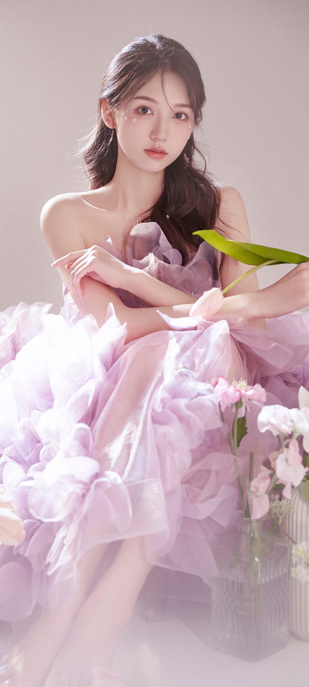 紫色裙子美女与鲜花唯美高清手机壁纸免费下载