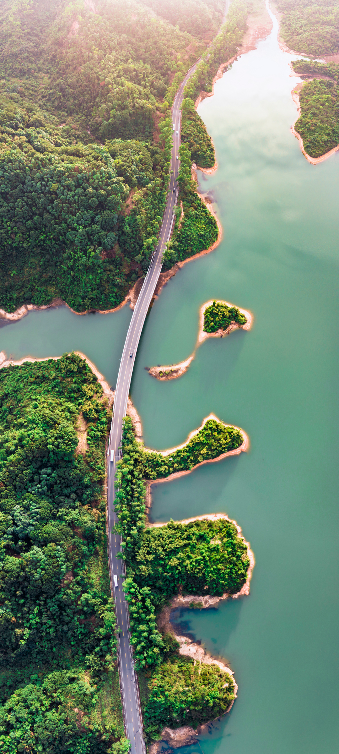 航拍视角下森林大桥湖绝美风景免费手机壁纸下载