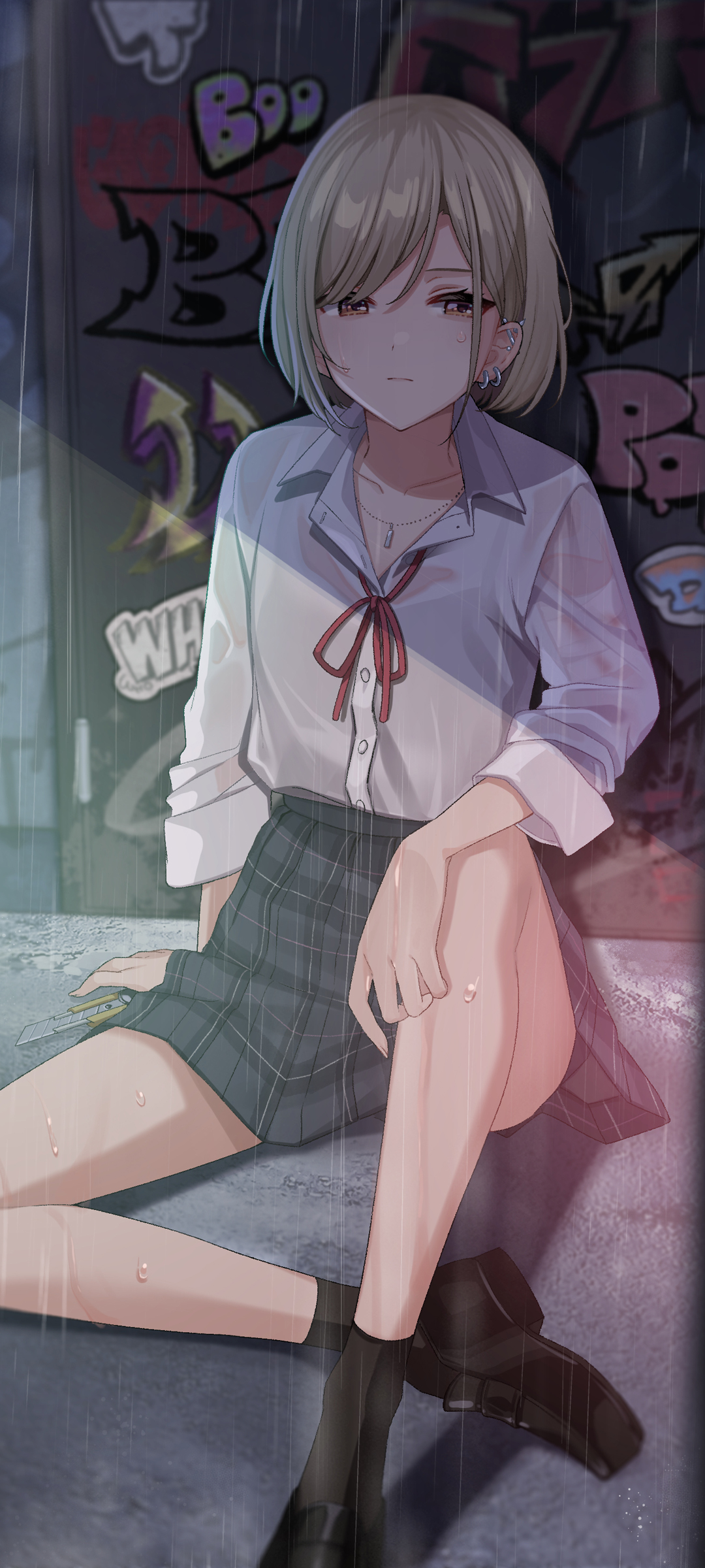 雨天路上静坐女孩动漫手机壁纸免费下载