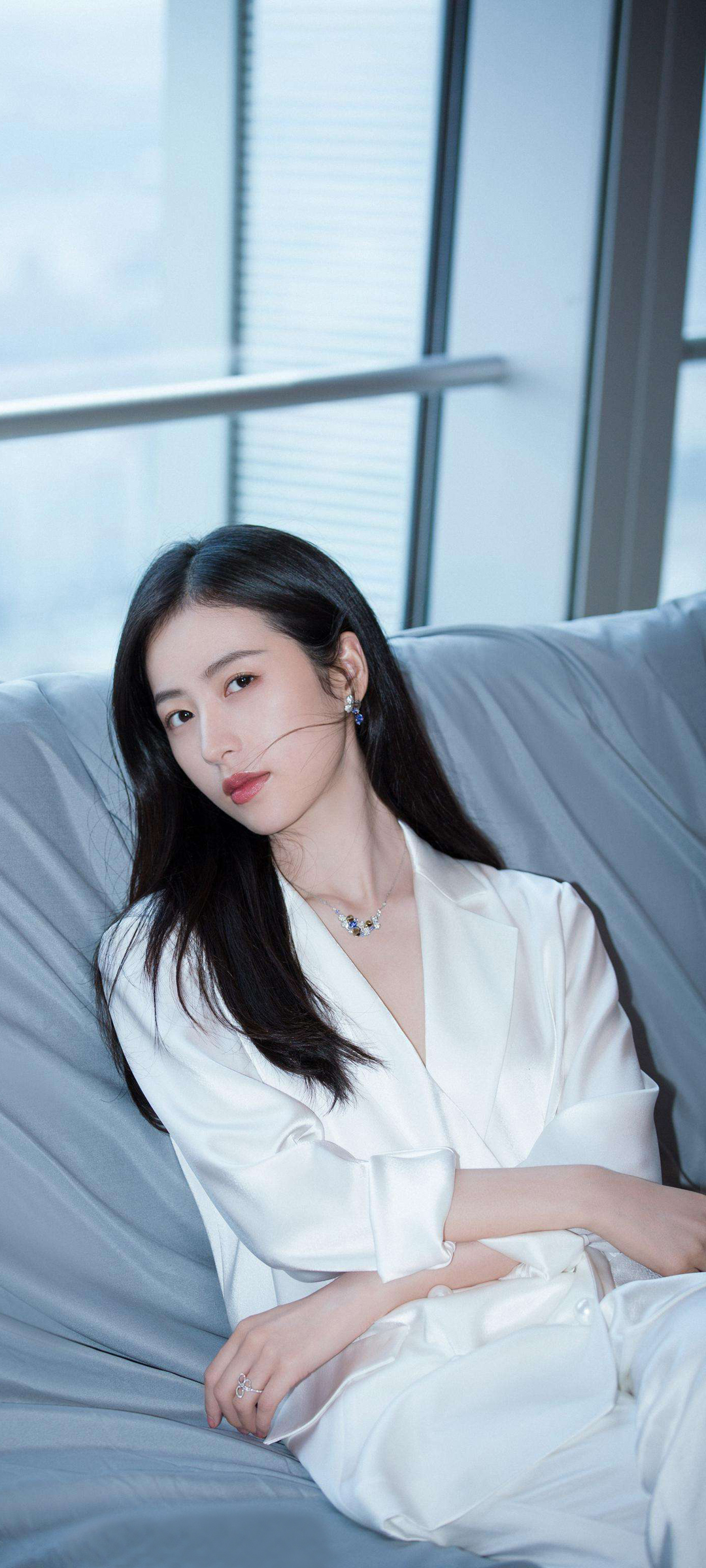 周雨彤白色西装 沙发 气质美女手机壁纸