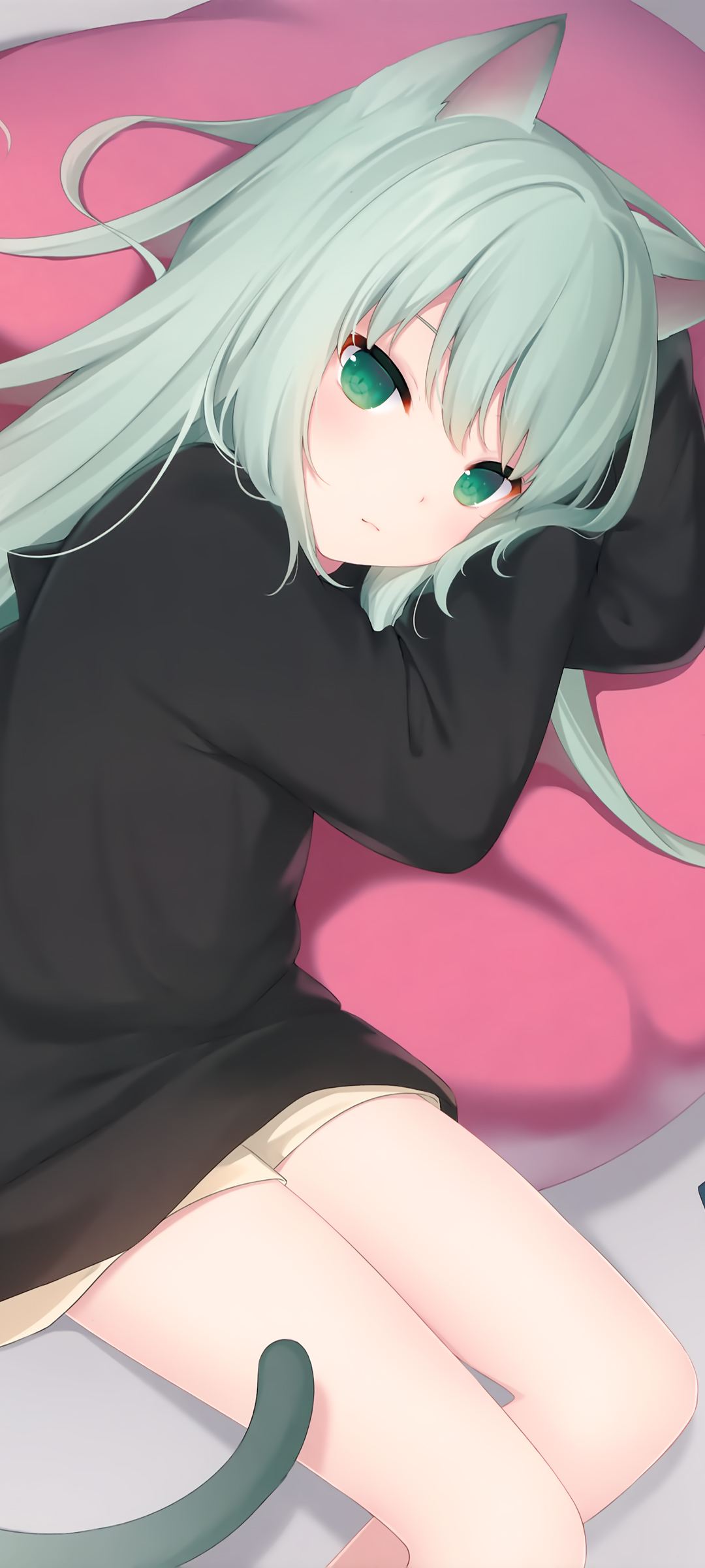 绿色眼睛猫耳可爱女生动漫手机壁纸免费下载
